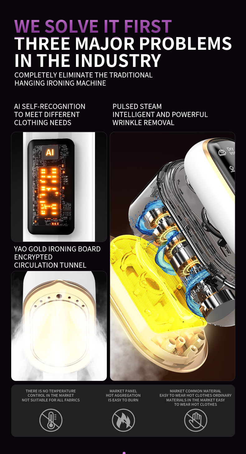 • Smart AI Temperature Control: Built-in intelligent chip automatically recognizes and adjusts to different fabric types, preventing damage.