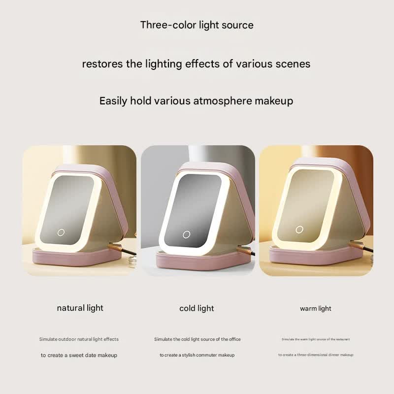 • Adjustable Lighting: Features stepless dimming and multiple light temperature modes (e.g., cool tones, warm tones, natural tones) for perfect makeup application in any environment.