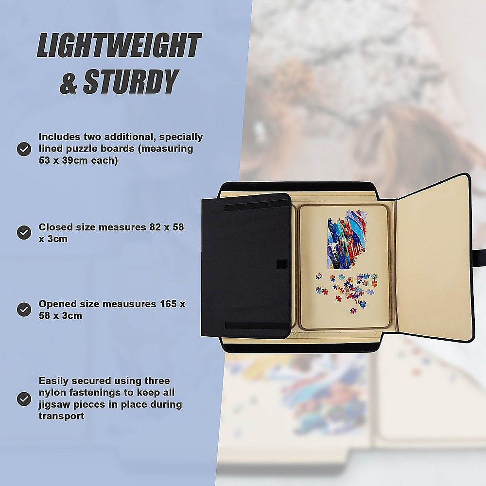 • Includes two additional, specially lined puzzle boards (measuring 53 x 39cm each)