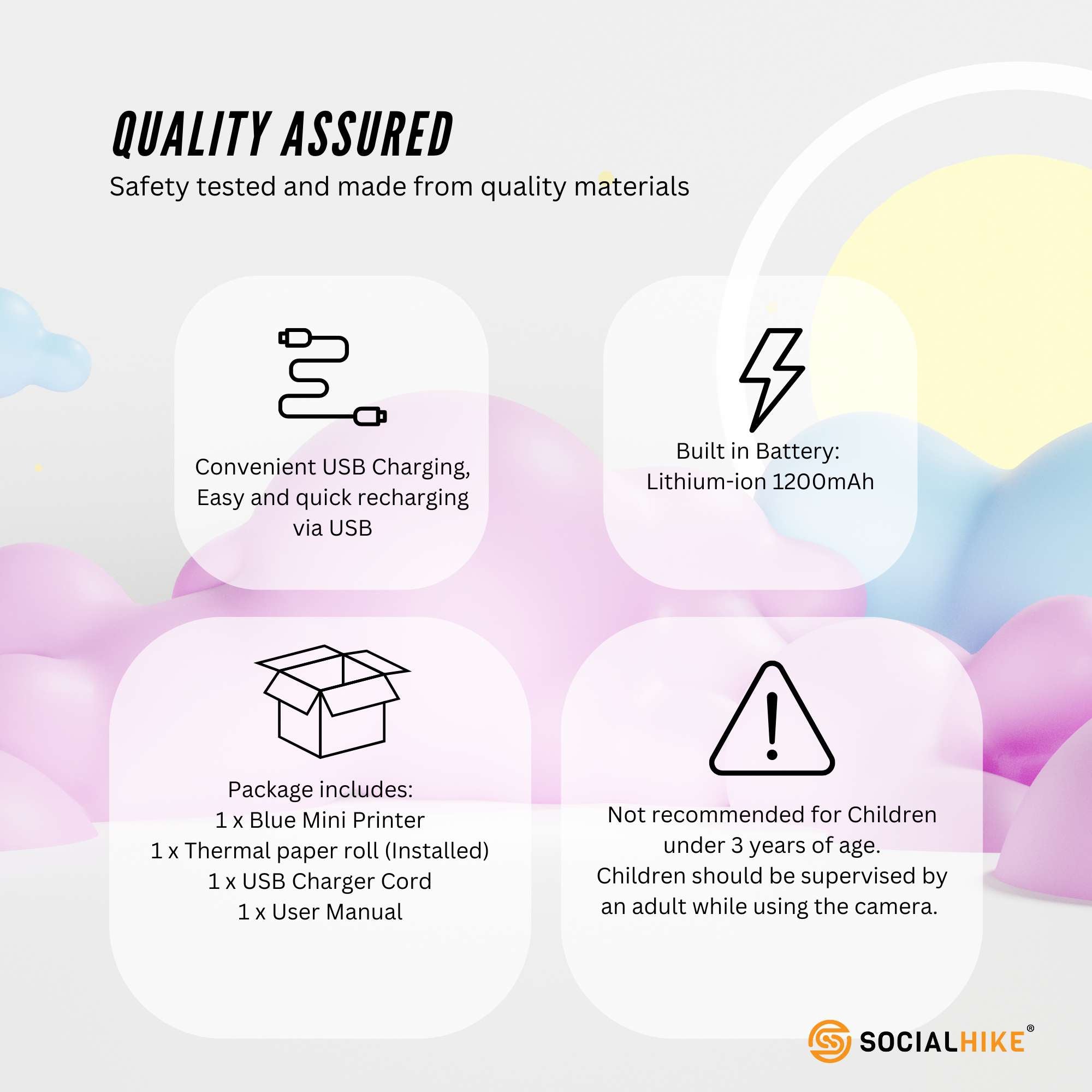Take your printing needs wherever you go with our Social Hike Mini Portable Printer! Whether you’re at home, in the office, or on an adventure, this compact and lightweight printer is designed to meet your on-the-go lifestyle. With easy Bluetooth connectivity, you can quickly pair your smartphone or tablet and start printing in seconds.