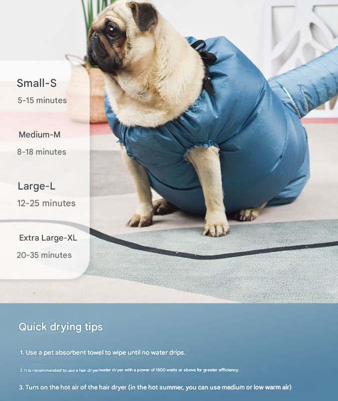 - Rapid Drying Technology: The inner layer is lined with a silver-plated film that effectively circulates warm air, drying your pet’s fur evenly and quickly from the roots out.