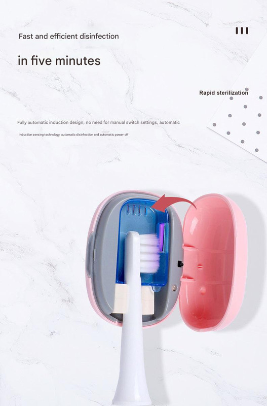 Portable UVC Toothbrush Sterilizer Case – 5-Minute Automatic Sanitizer, USB-C Rechargeable(pink)