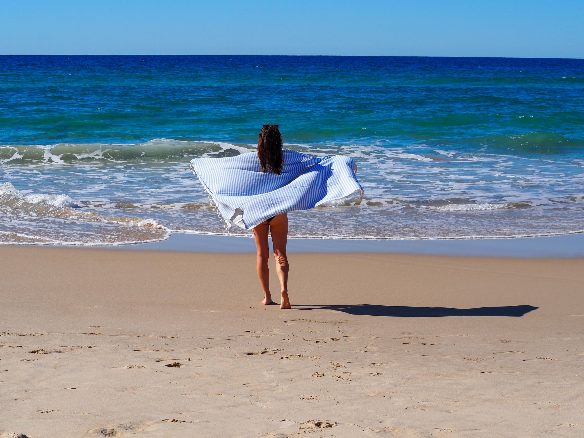 The Portsea pure cotton beach towel are quick drying and compact, making them ideal for beach trips. Enjoy the luxury softness in your next outing in the sun.