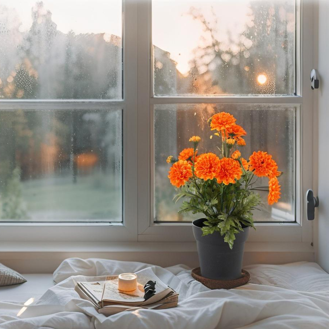 Potted Artificial Orange ‘Mum’ Chrysanthemum 26cm