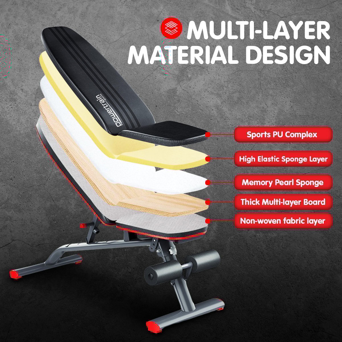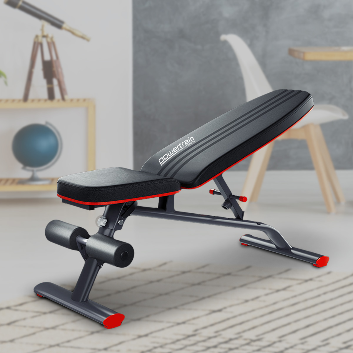 The PowerTrain adjustable bench is just what you need to sit and do dumbbell arm curls and leg extensions, as well as being an incline-flat-decline bench press with a total load rating of 250kg.
