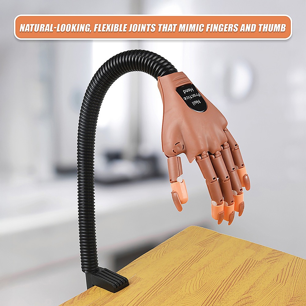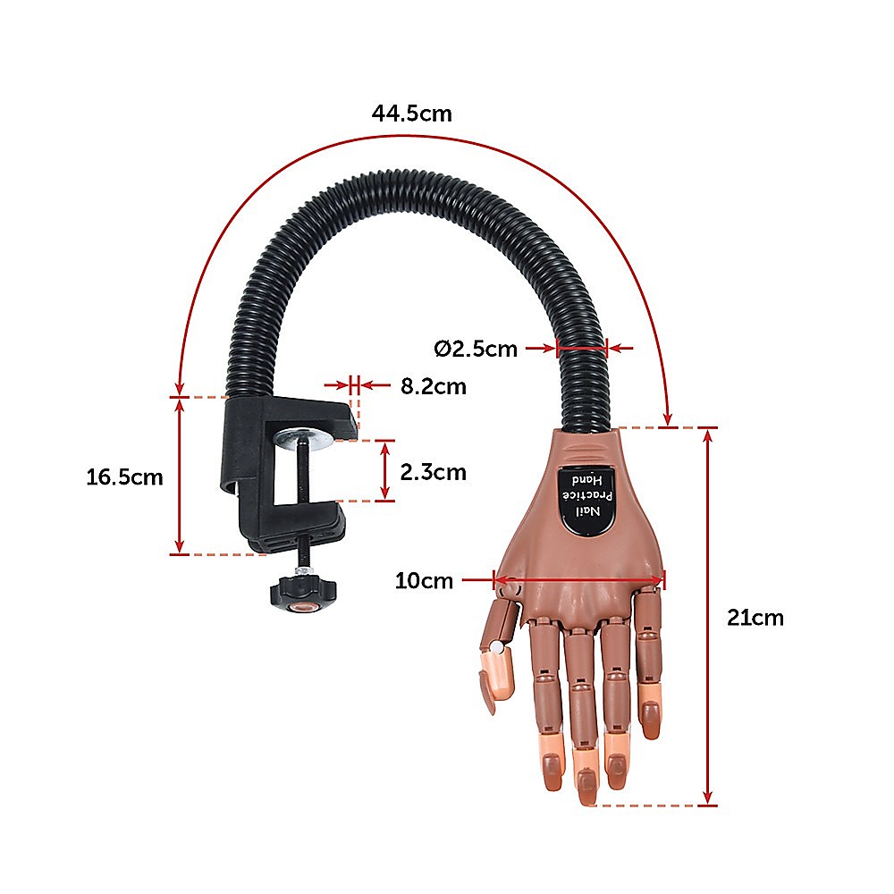 Whether you're a professional manicurist who wants to hone her skills or just want to learn to do a salon-worthy job on your own nails, this manicure practice trainer by Randy Travis Machinery is the perfect solution. Crafted from sturdy, yet flexible ABS, this lifelike hand with its spring-powered, flexible arm' provides you with a realistic scenario for hours of practice. Just fasten it to your benchtop or tabletop with the clamp and get started with your first manicure.