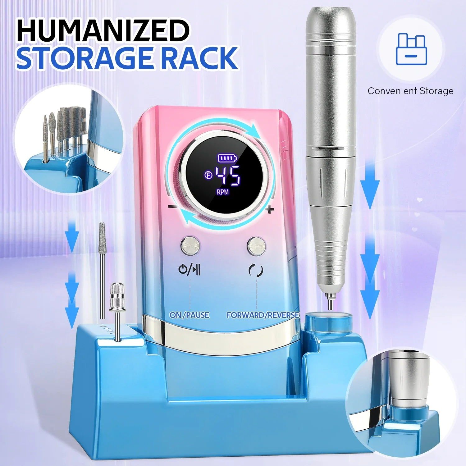 - Achieve salon-quality manicures at home with a powerful 45000 RPM motor, perfect for shaping, polishing, and removing gel and acrylics.