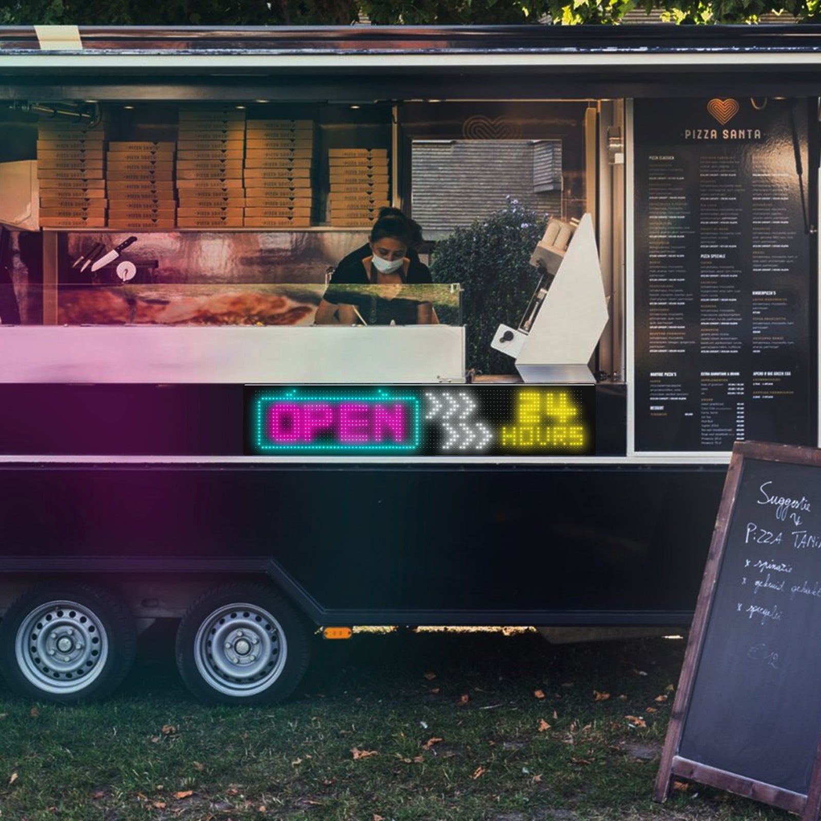 design is IP65 waterproof, making it durable and adaptable to various mounting spots. With full DIY functionality, you can display custom text and patterns to promote a business, share personal messages, or creatively express yourself on the go.