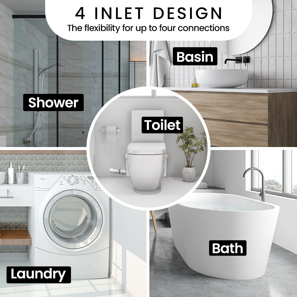 PROTEGE Macerator Pump, with 4 Inlet, for P-Trap Toilet, House, Bathroom, Shower, Sink, Washing Machine