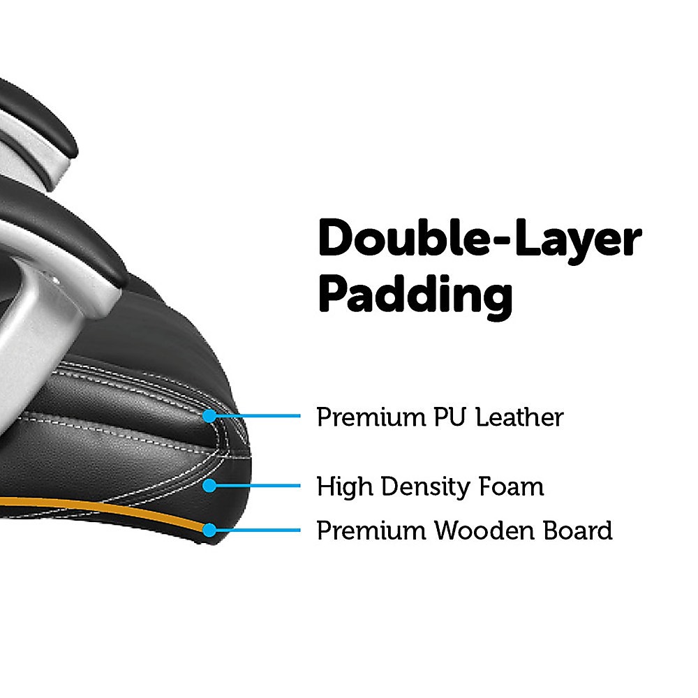 Made with premium grade black PU leather coupled with quality craftsmanship, the executive chair is both durable and stylish.
