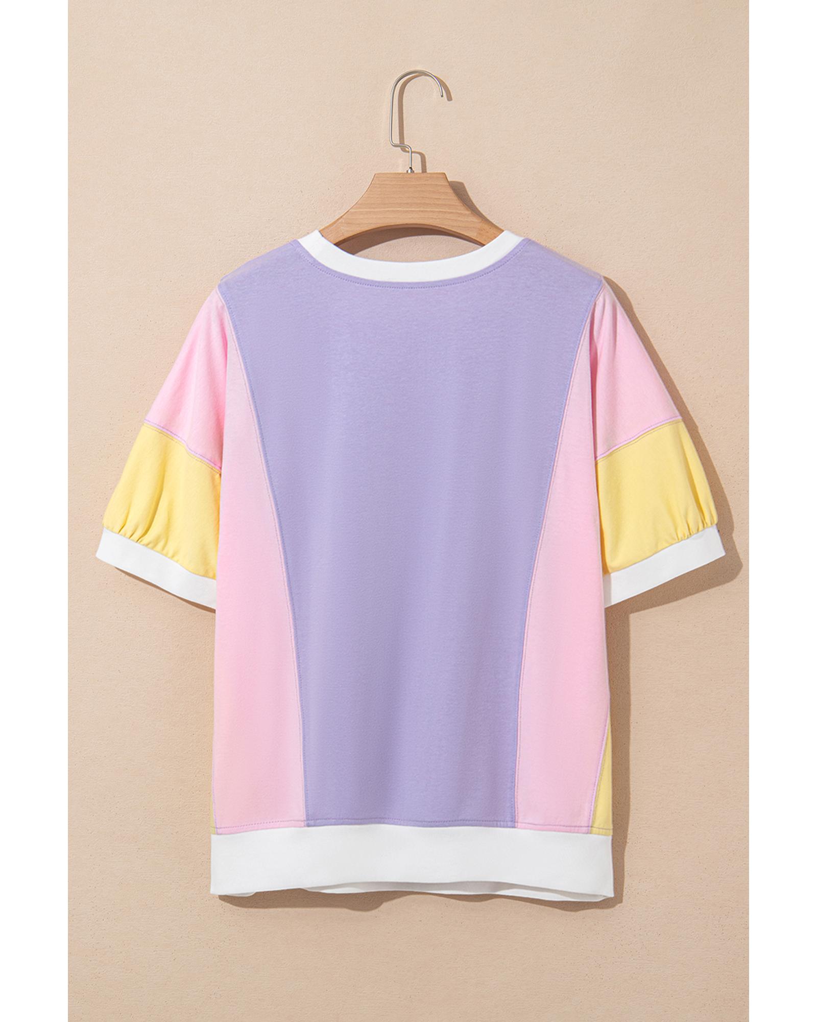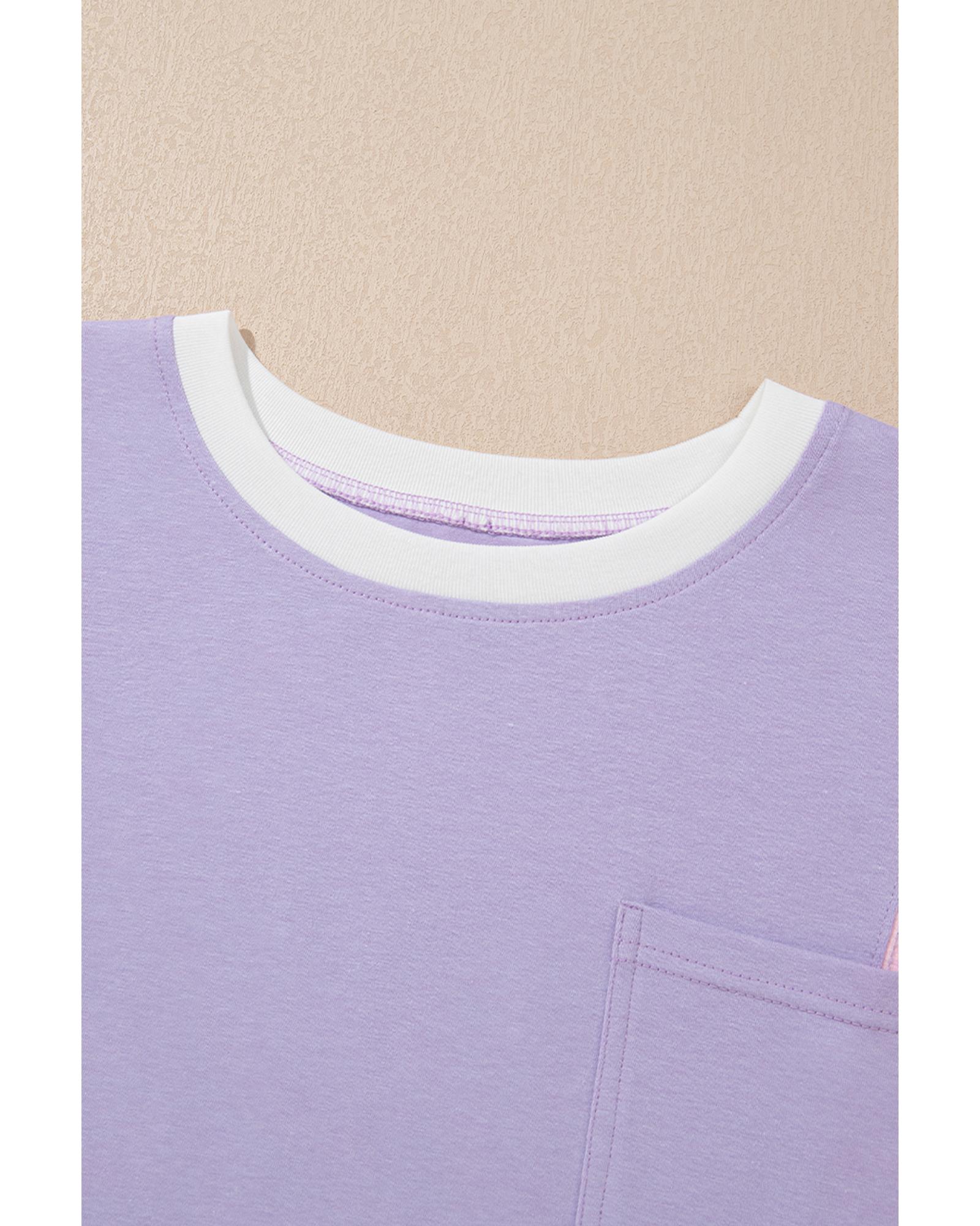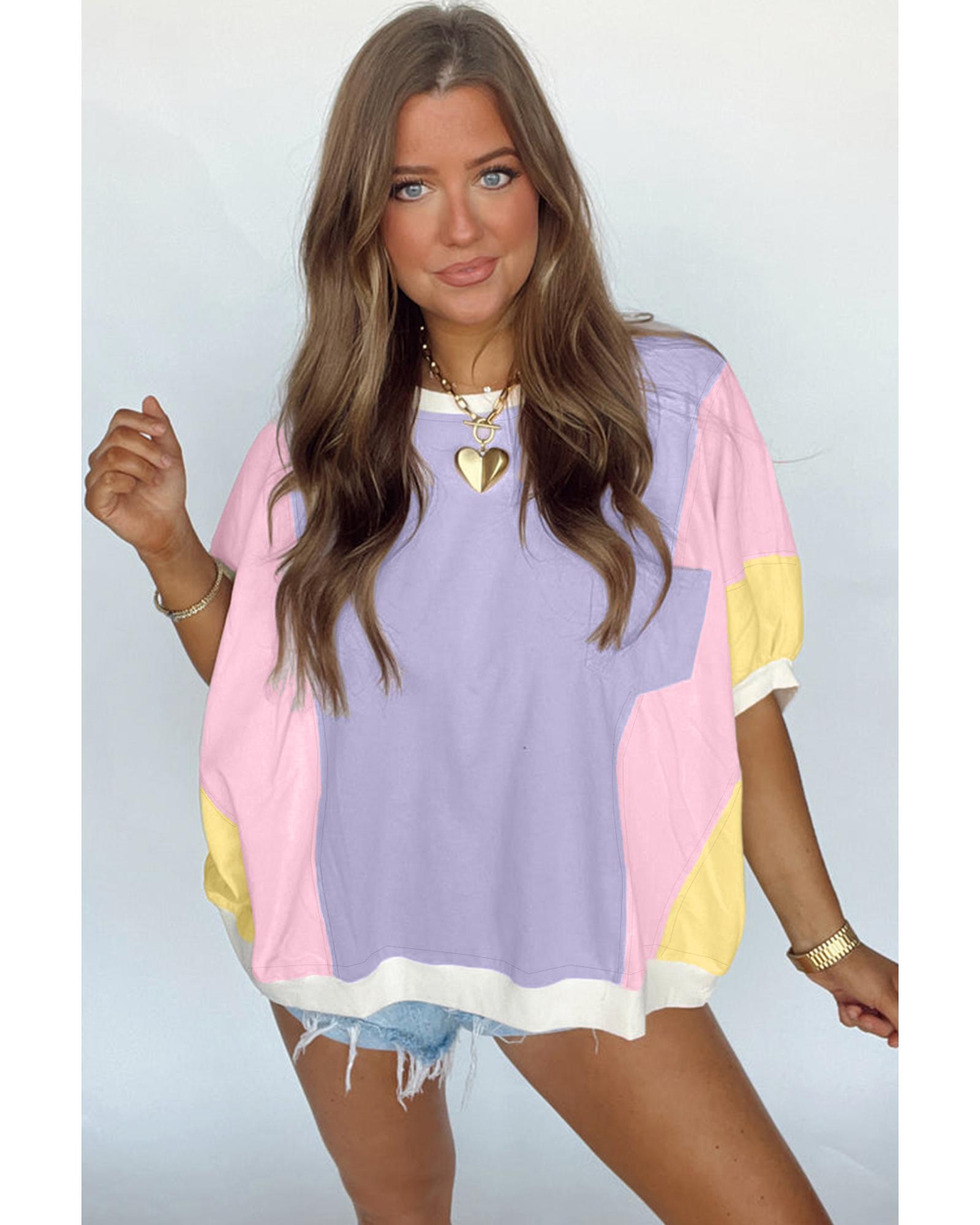 Purple Color Block Patchwork Half Sleeve Oversized T Shirt – L