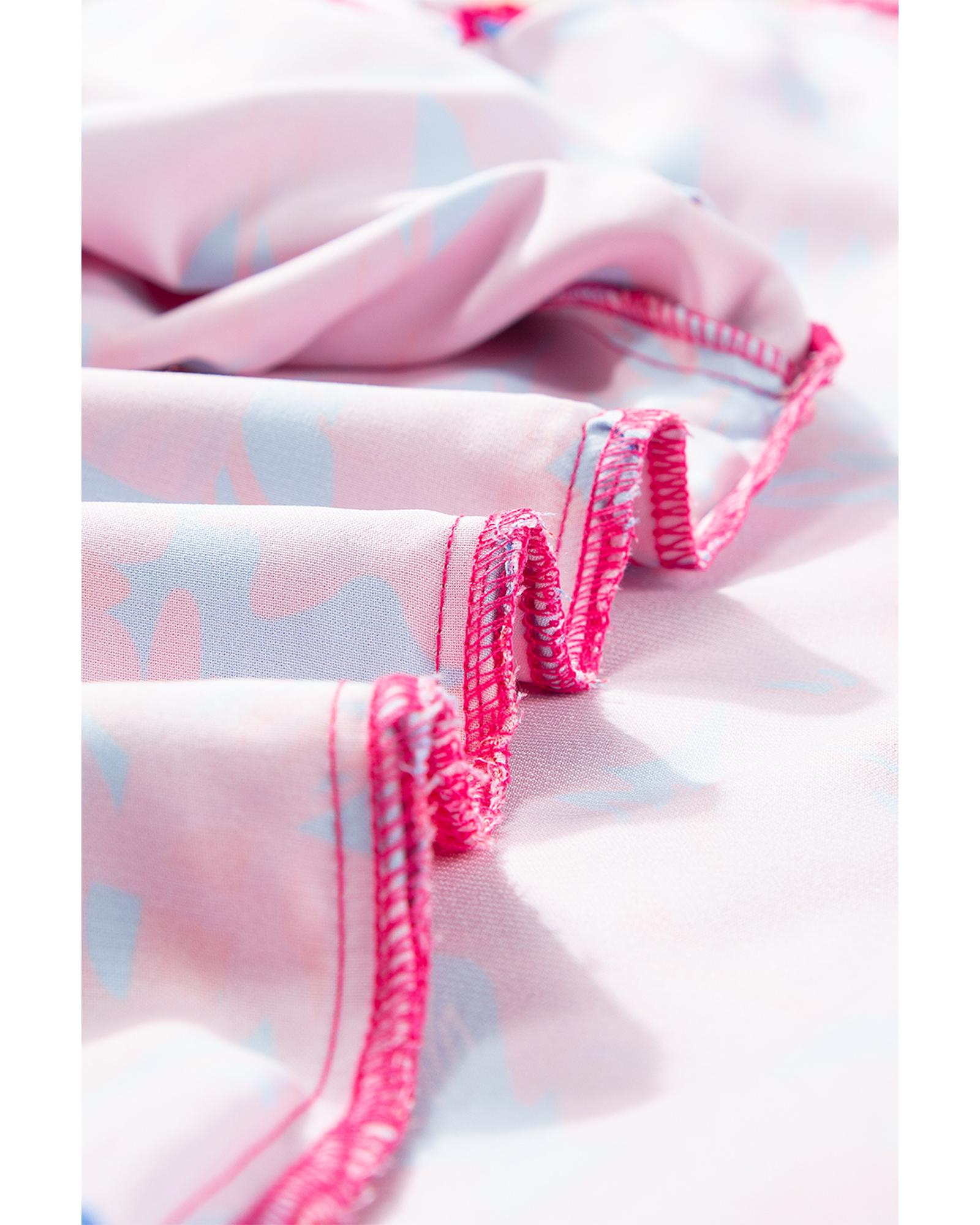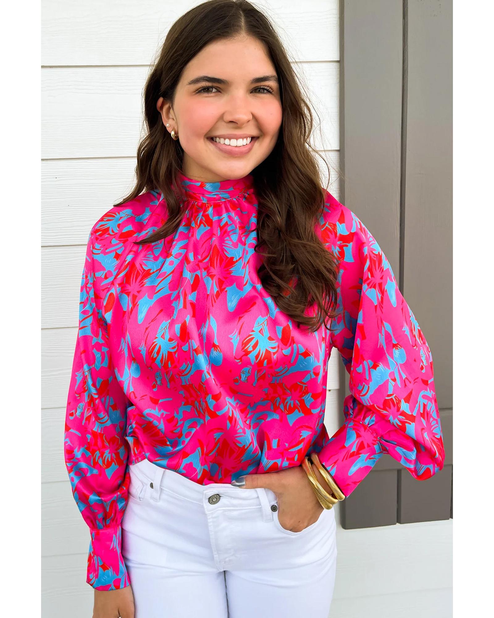 Purple Printed Bubble Sleeve Mock Neck Blouse – S