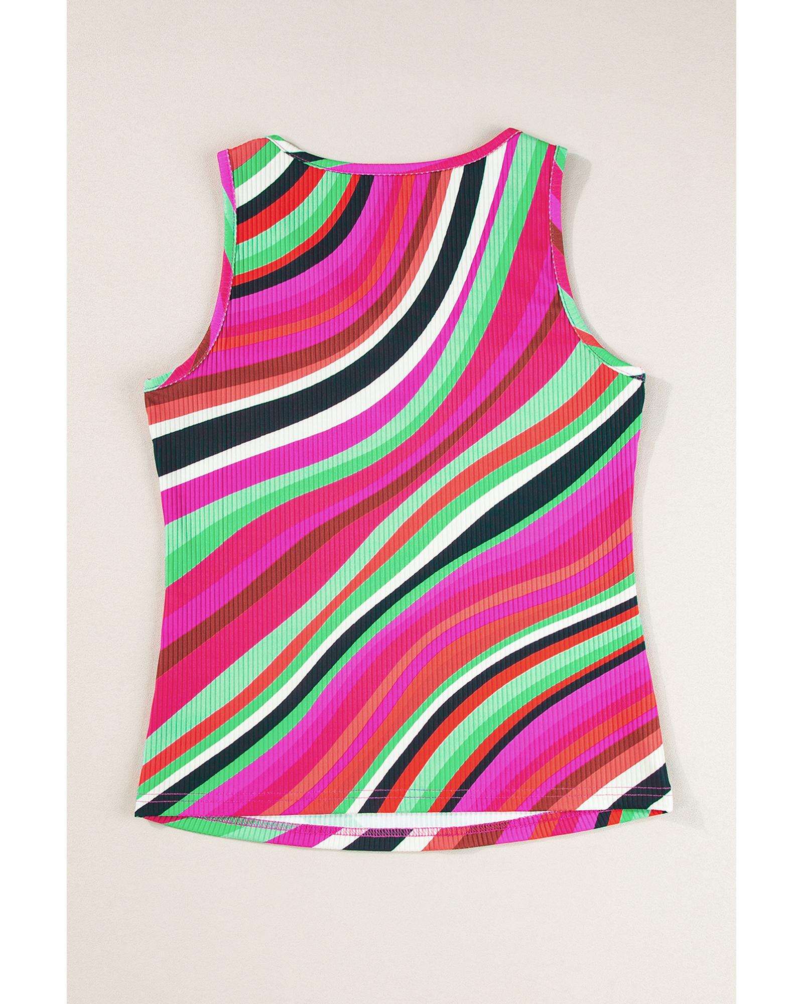 - Purple Wavy Striped Buttoned V Neck Tank Top