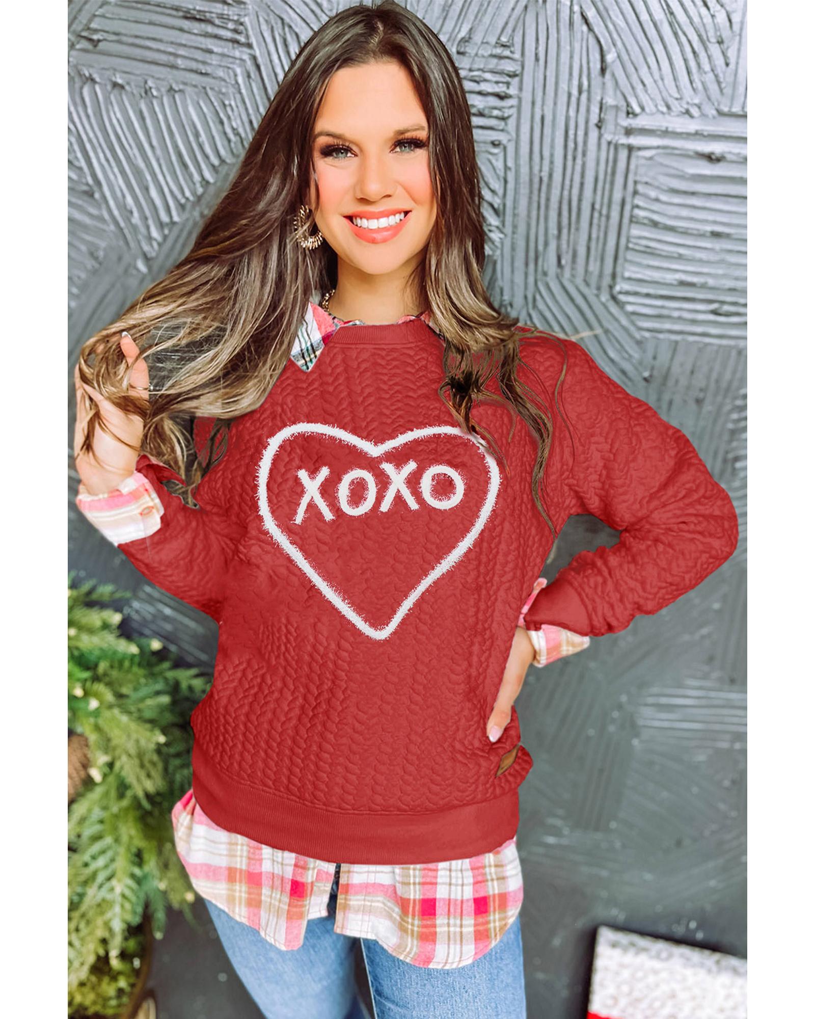 - Racing Red Heart XOXO Chenille Embroidered Textured Sweatshirt