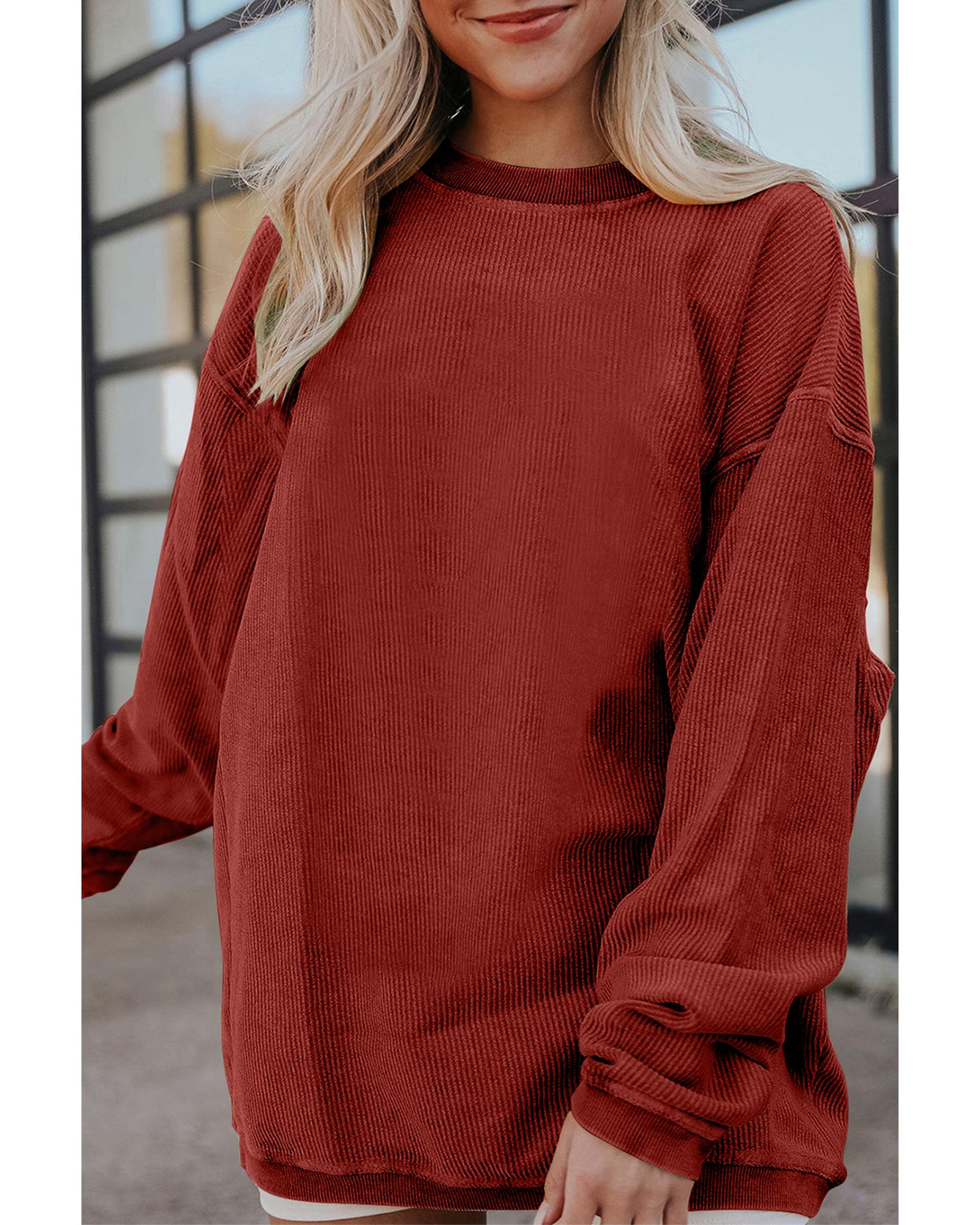 Racing Red Ribbed Corded Oversized Sweatshirt – L