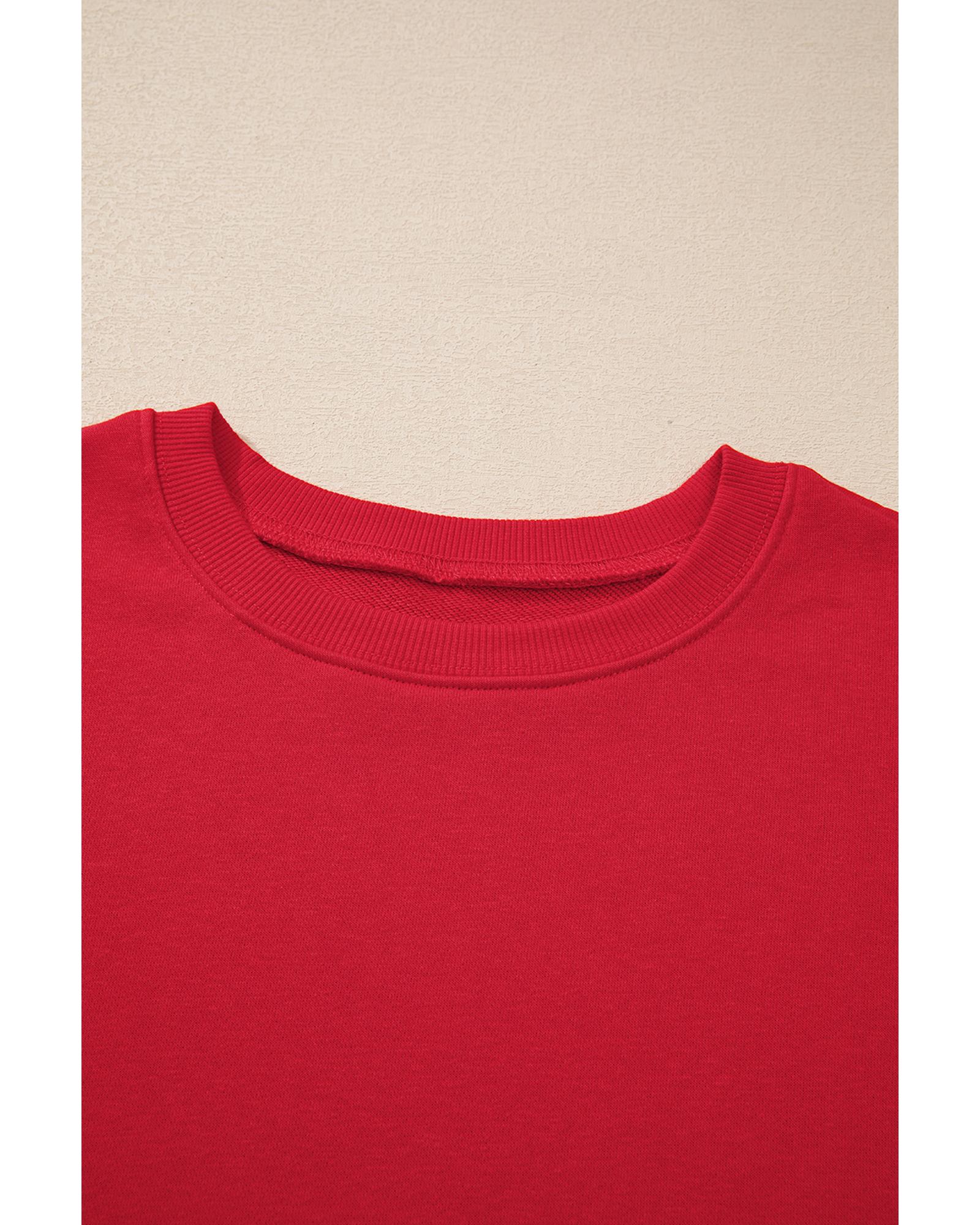 Racing Red Solid Crew Neck Drop Shoulder Plus Size Sweatshirt – 1X