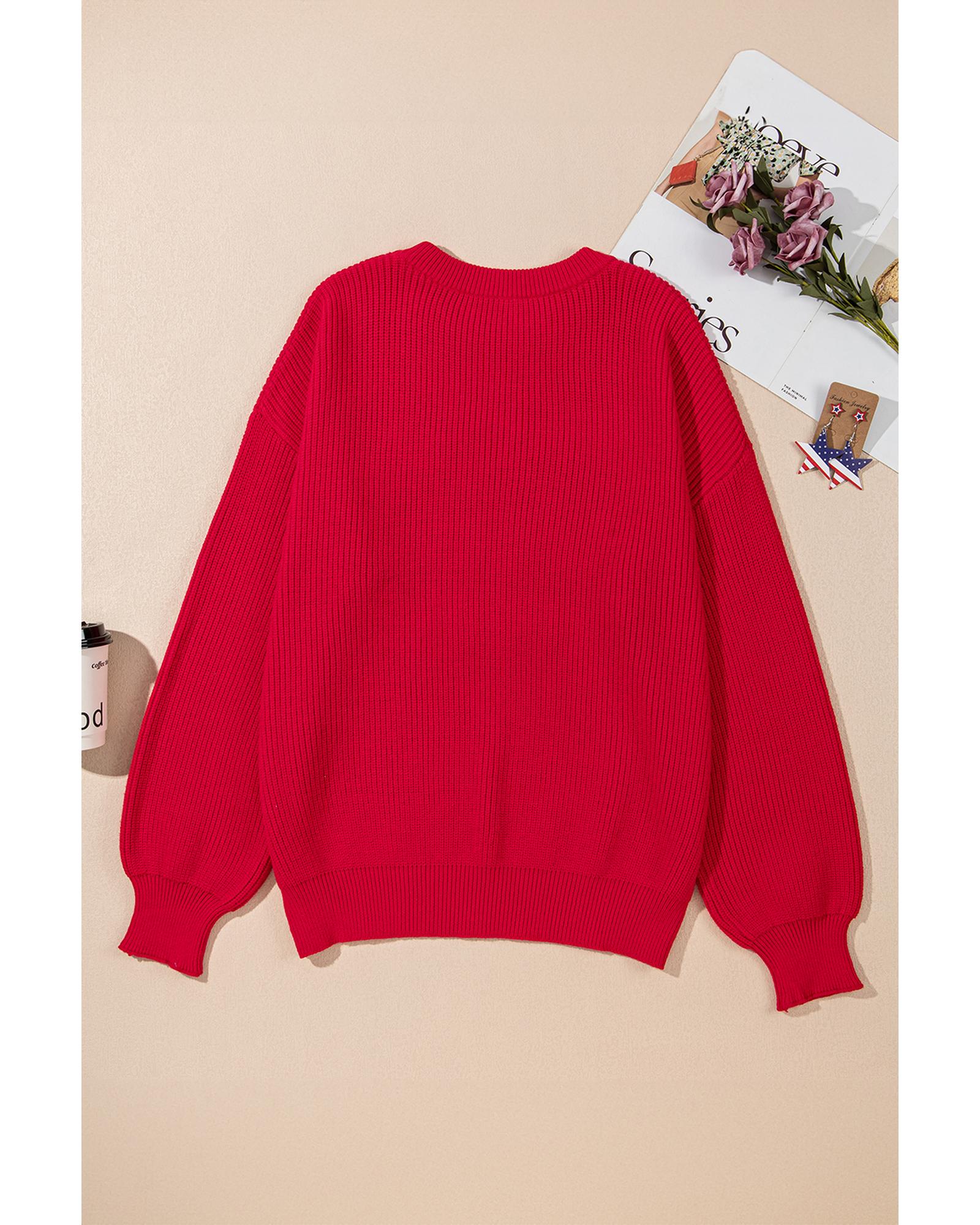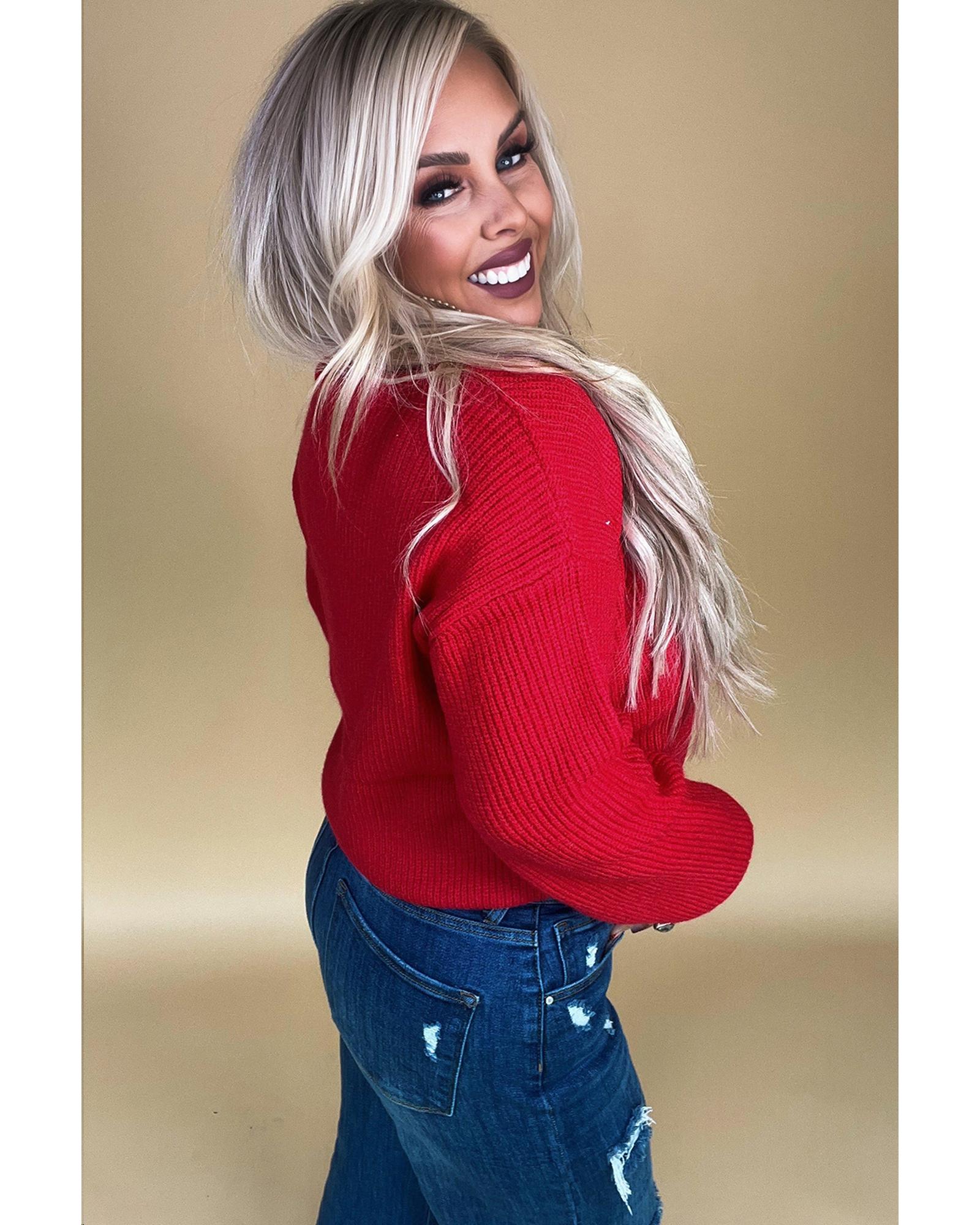 Racing Red Sparkle All The Way Tinsel Crew Neck Plus Size Sweater – 1X