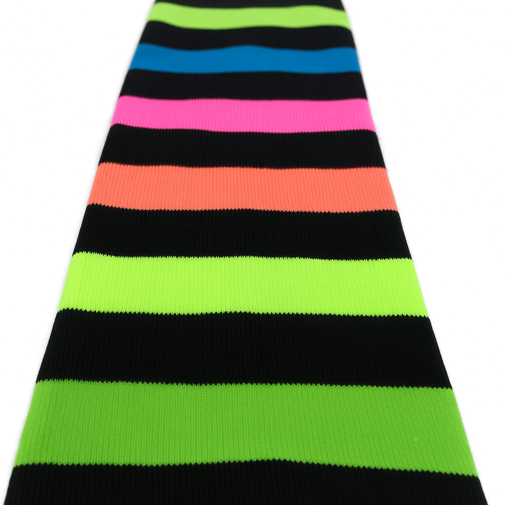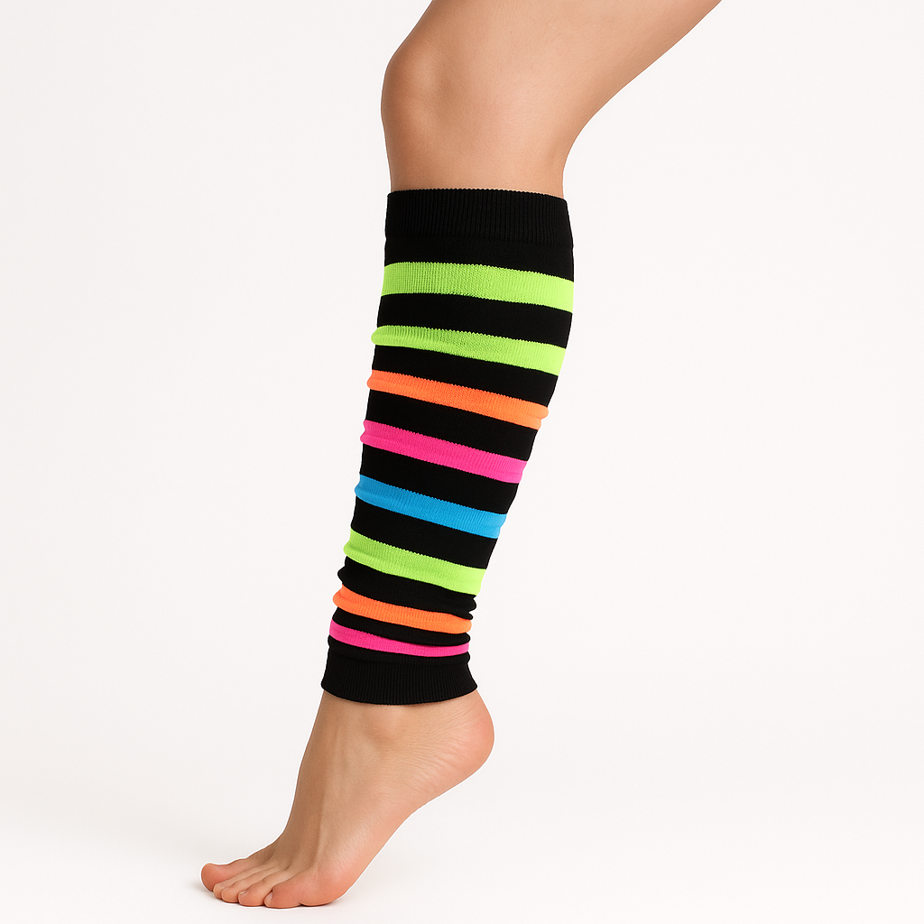 RAINBOW LEG WARMERS Party Costume Fine Stretch Ladies Girls Fancy Dress – Rainbow with Black Stripe