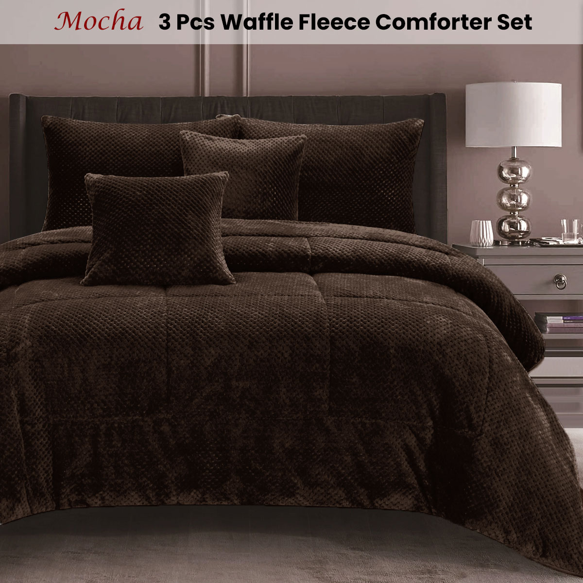 Ramesses Waffle Fleece Mocha 3 Pcs Comforter Set Double