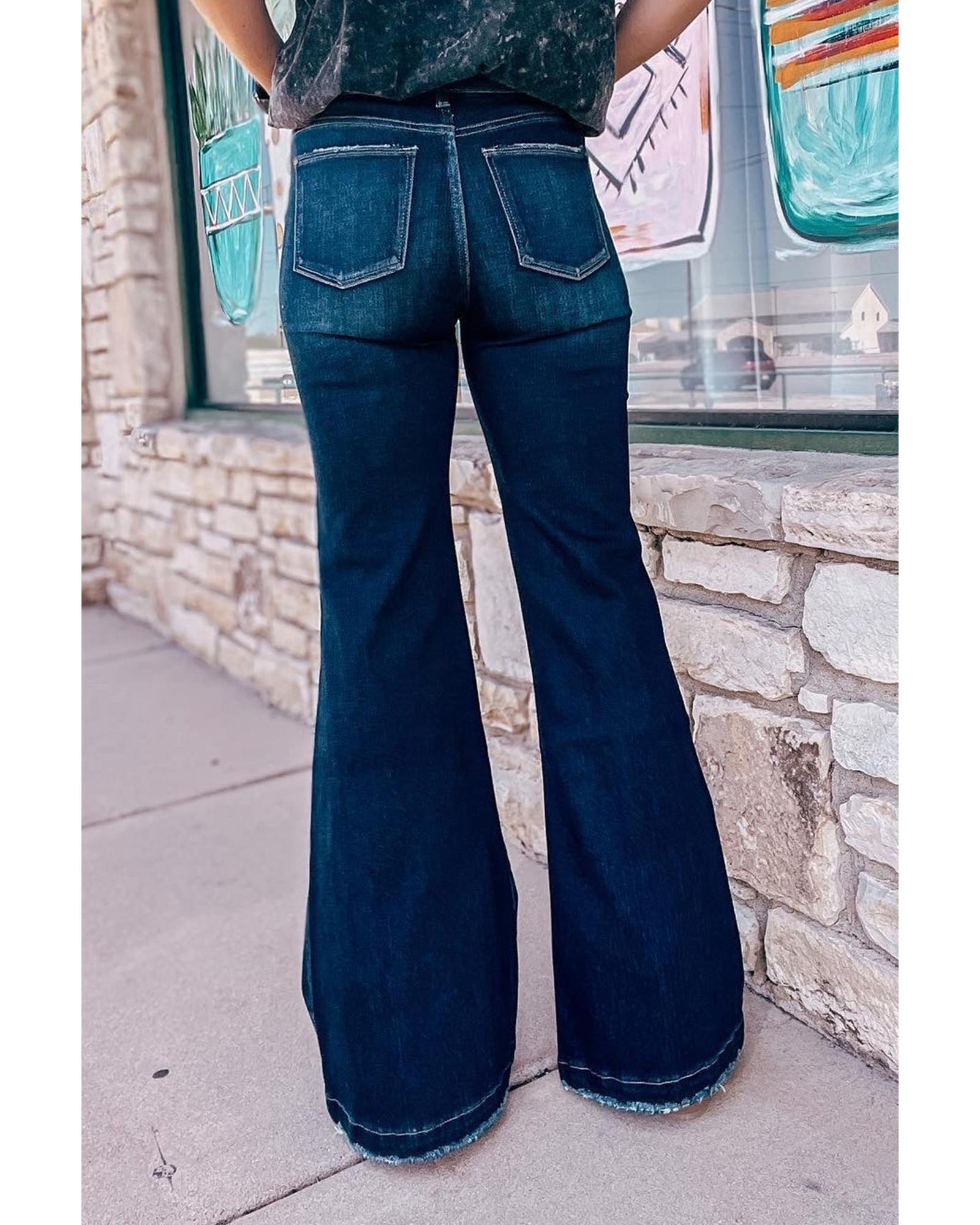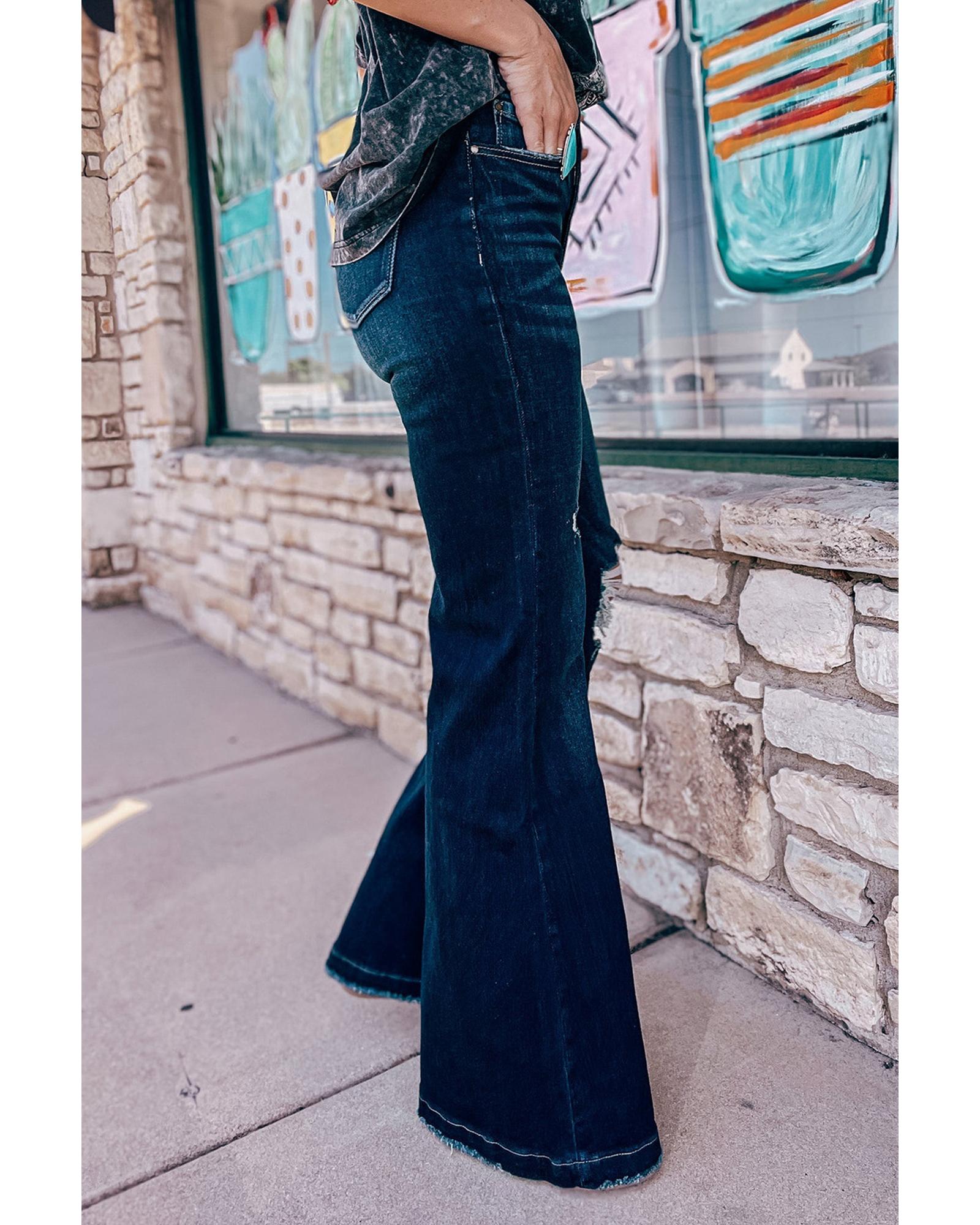 Real Teal High Rise Ripped Bell Bottom Jeans – 14 US