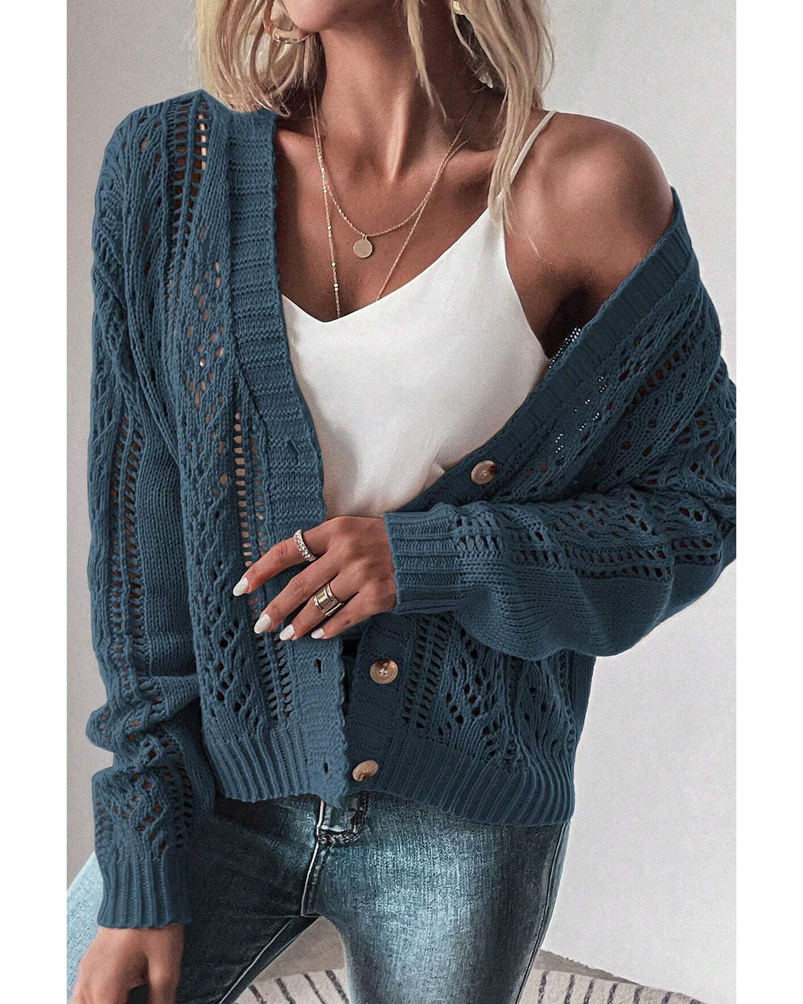 Real Teal Open Knit Drop Shoulder Sweater Cardigan – XL