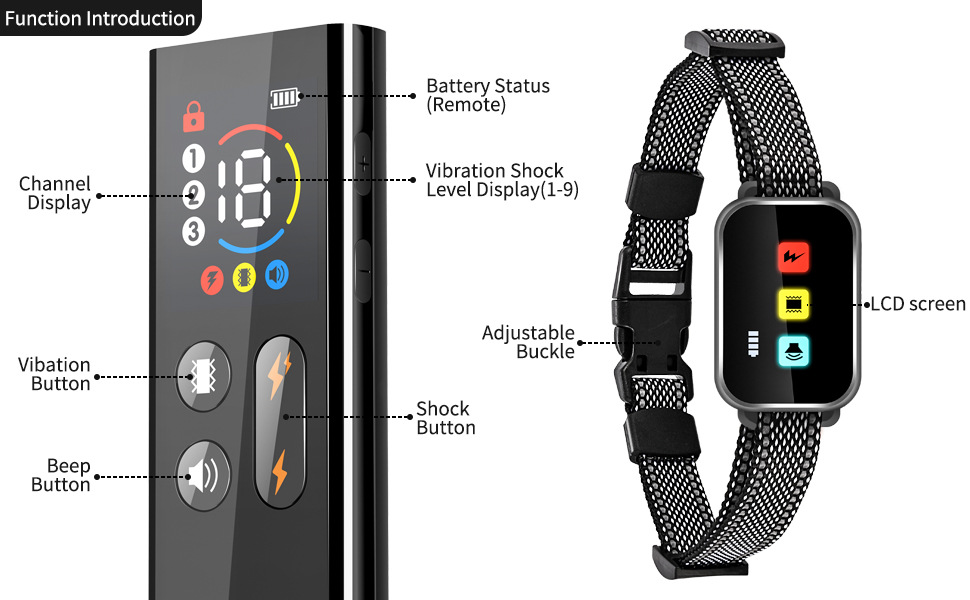 • Training Modes: Beep, Vibration (1-8 Levels), Shock (1-18 Levels)