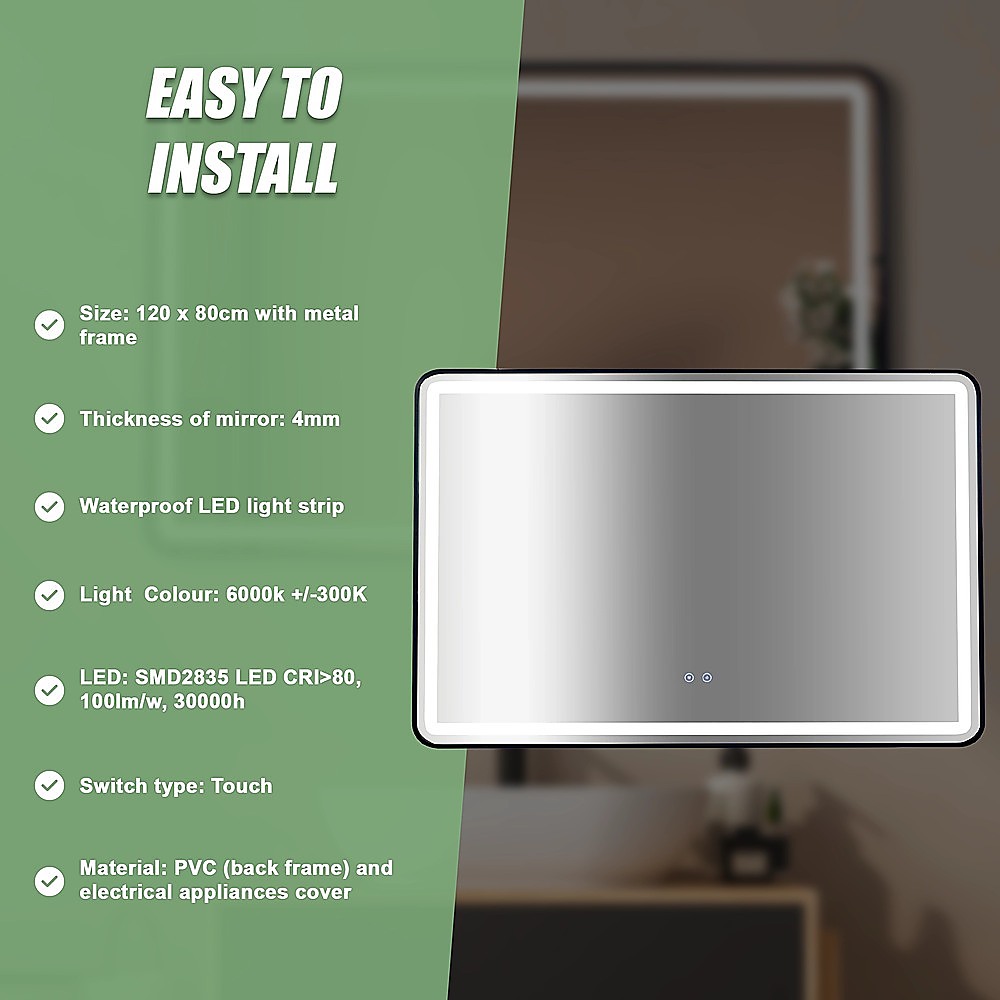 Rectangular Mirror LED Anti-Fog Illuminated Bathroom Living Room