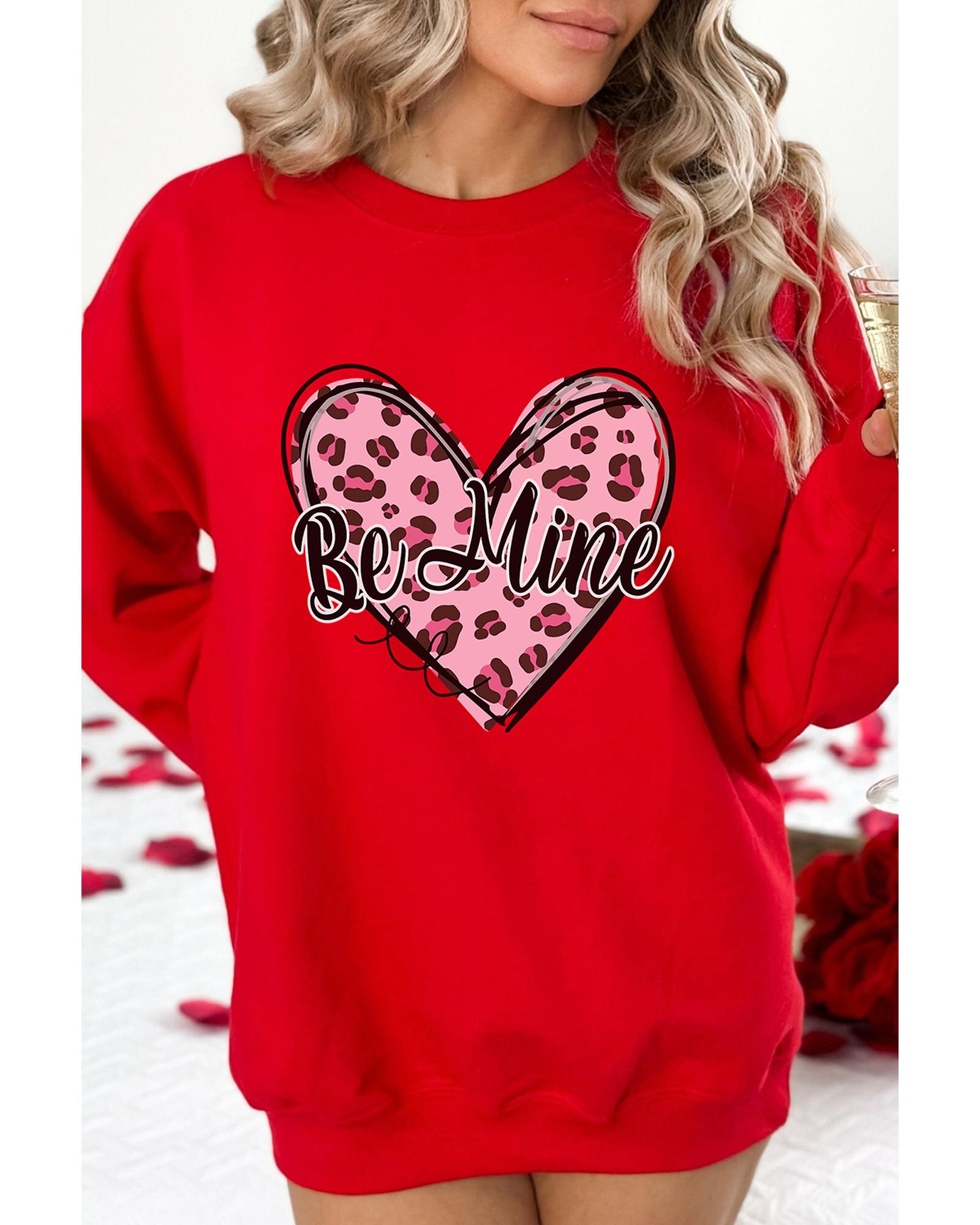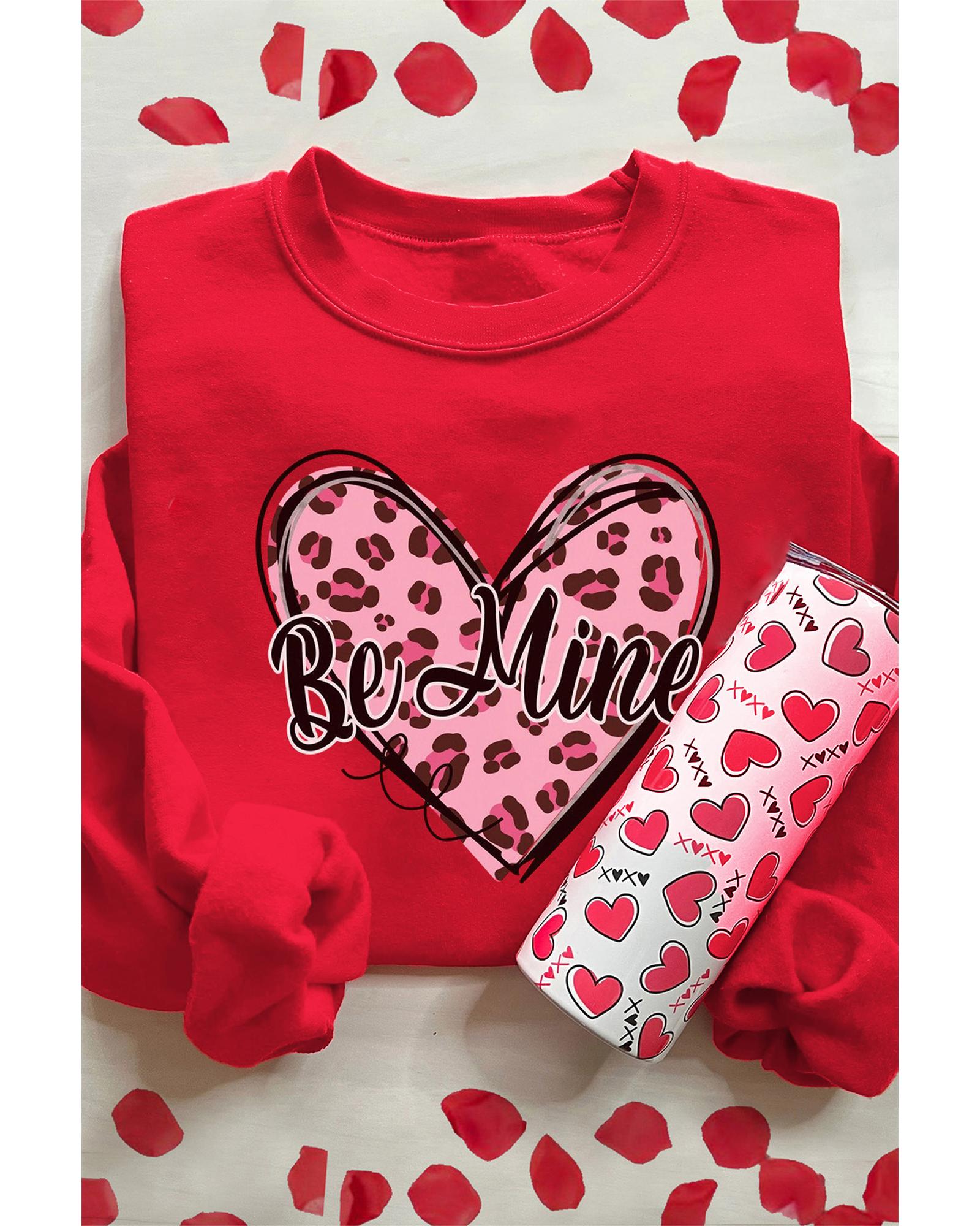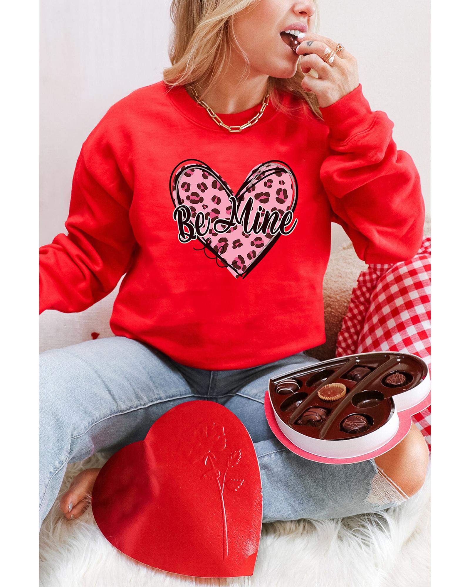 • Red Be Mine Leopard Heart Printed Sweatshirt