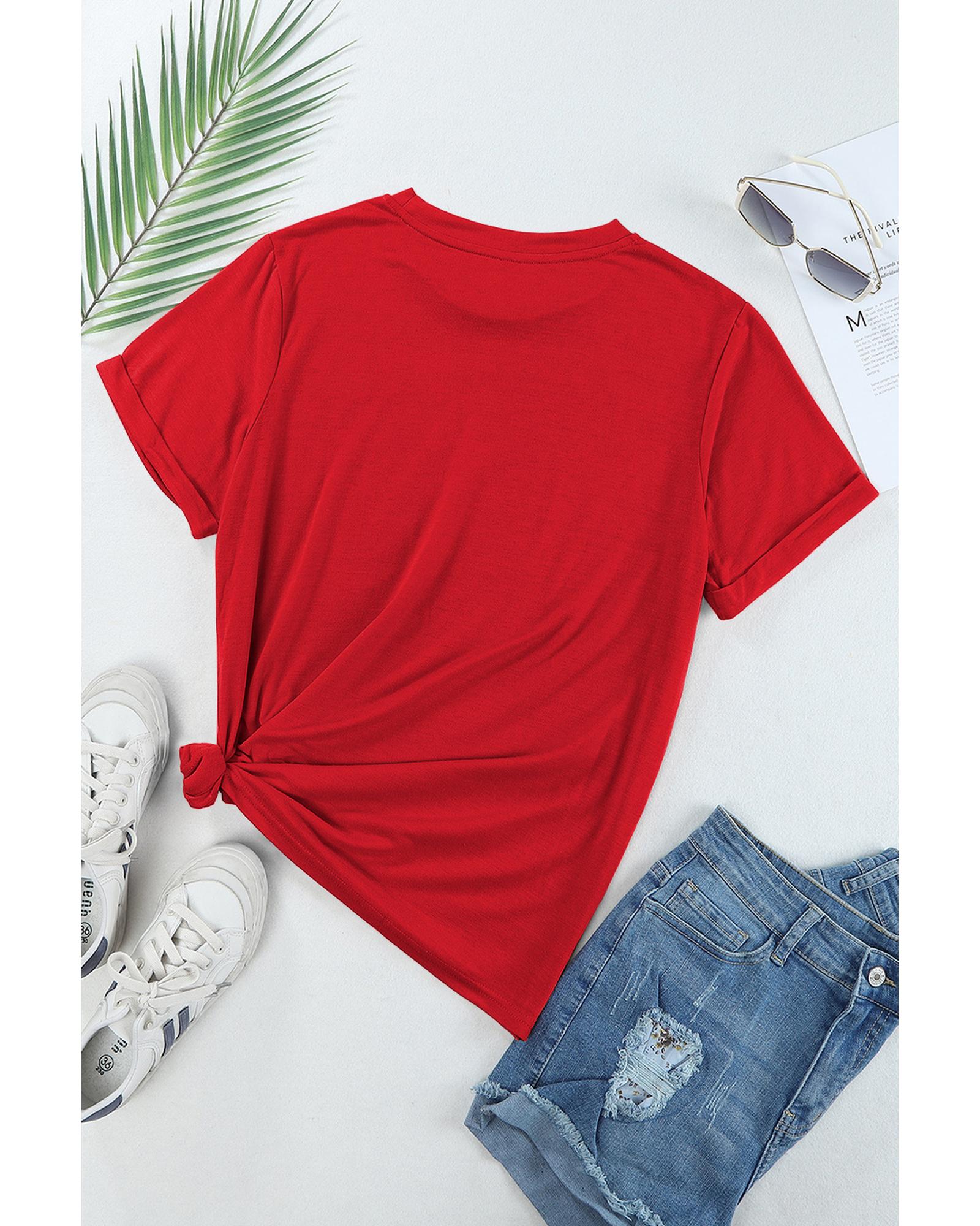 • Classic Red Casual Plain Crew Neck Tee