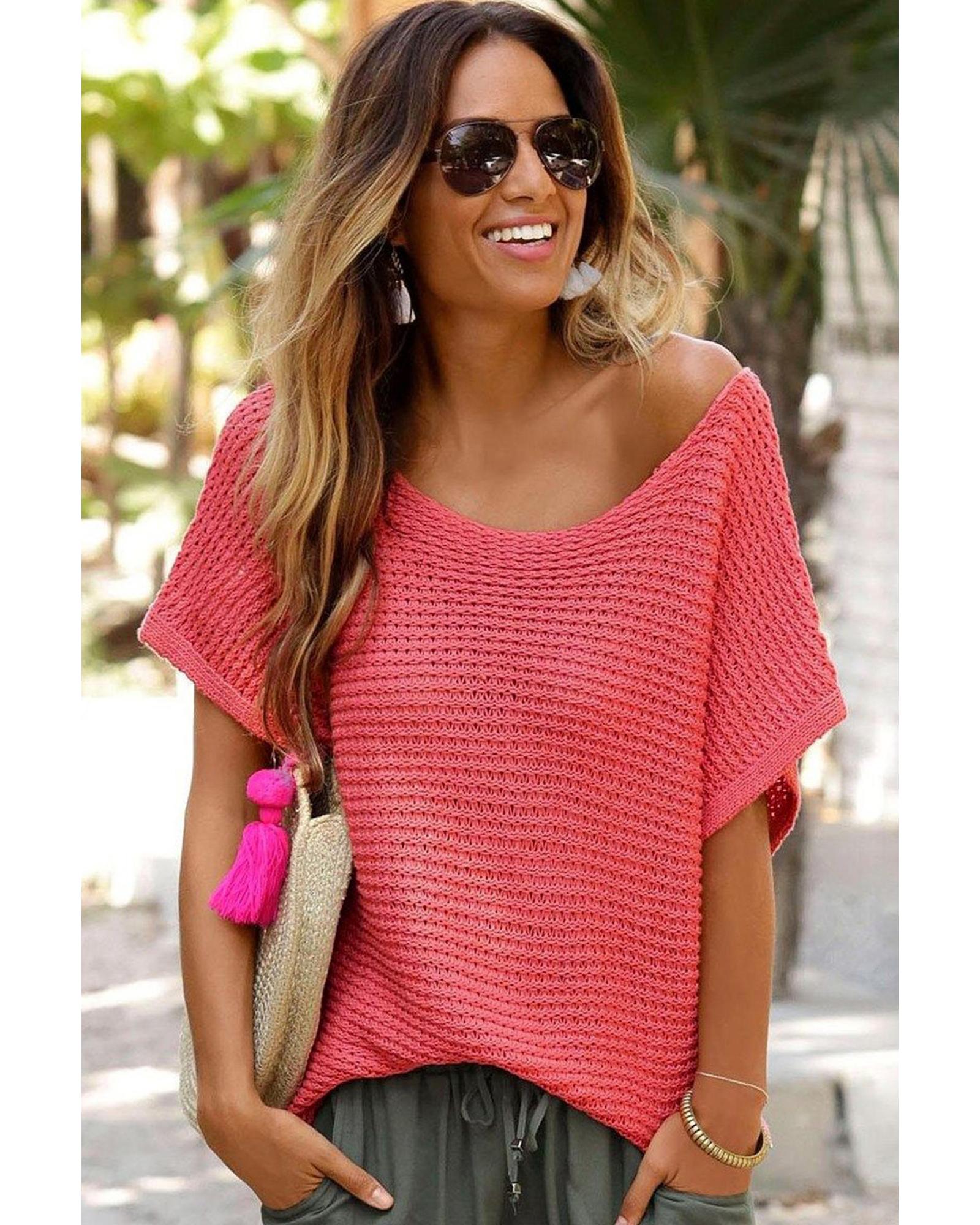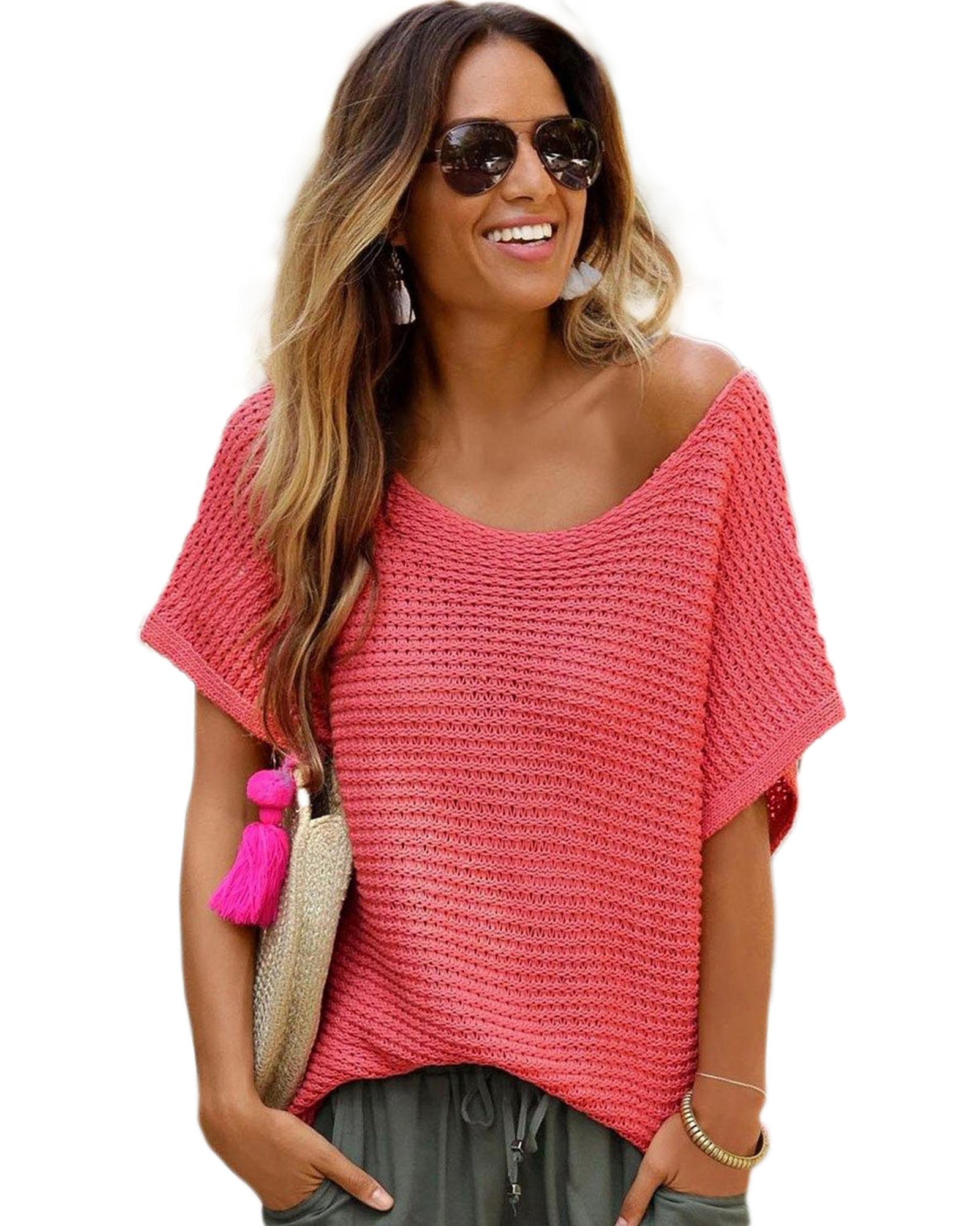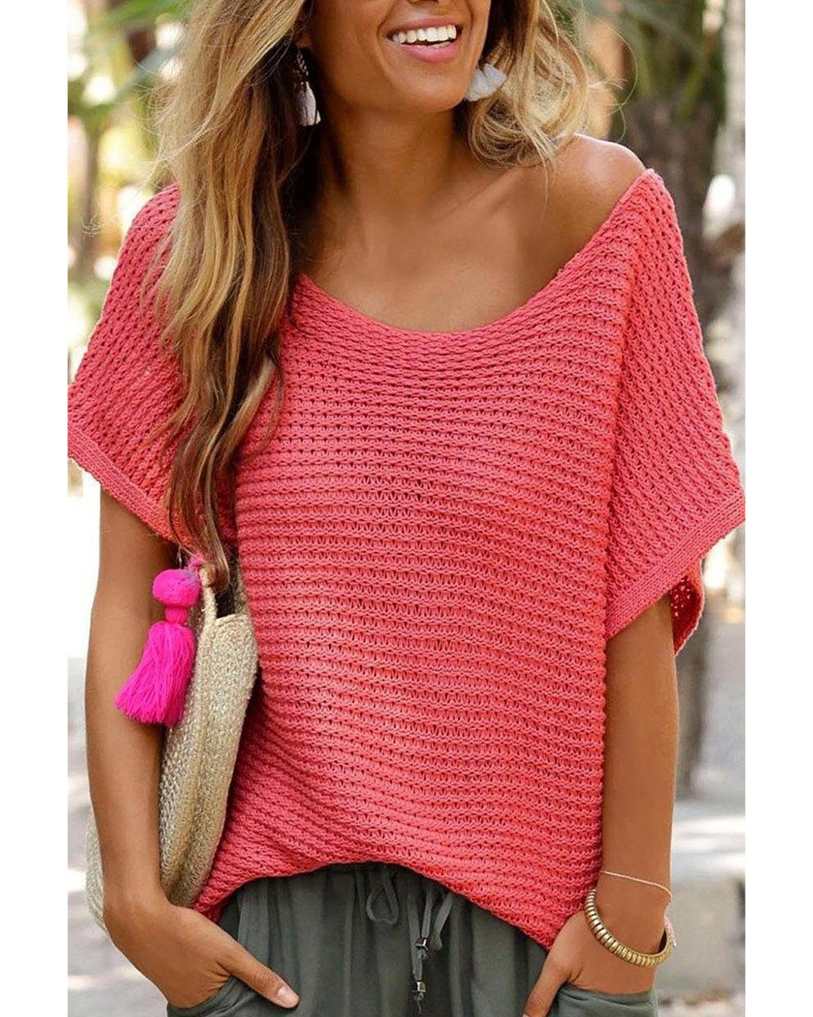 Red Clay Solid Loose Knit Short Dolman Sleeve Sweater – XL