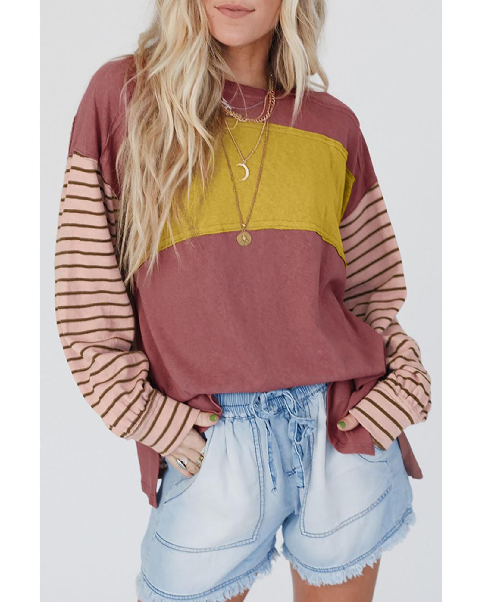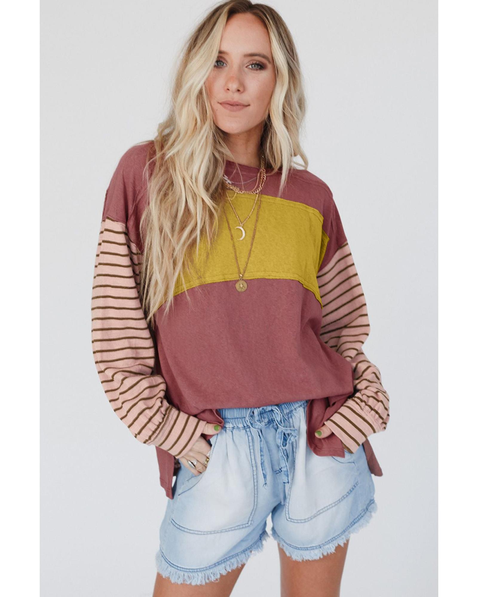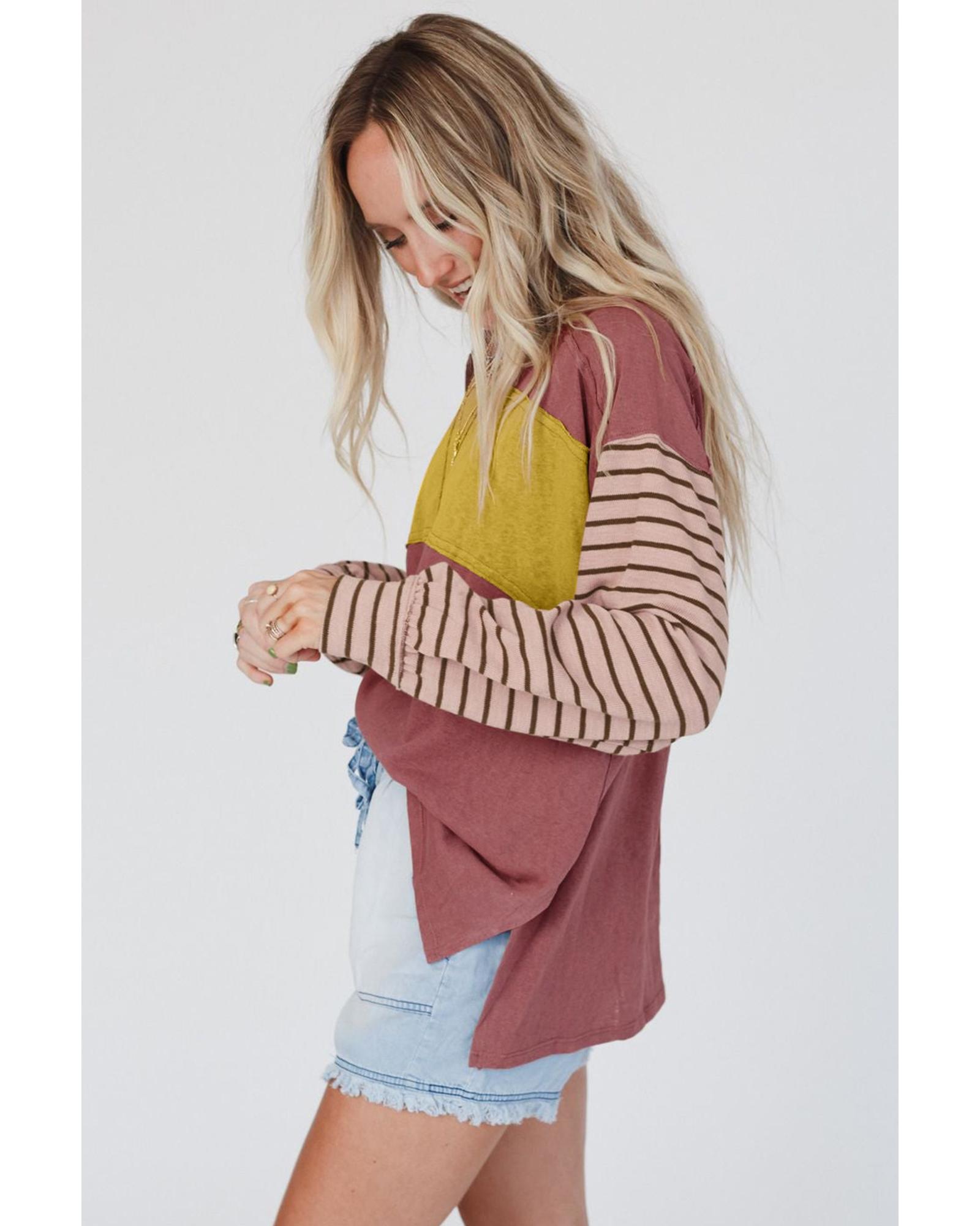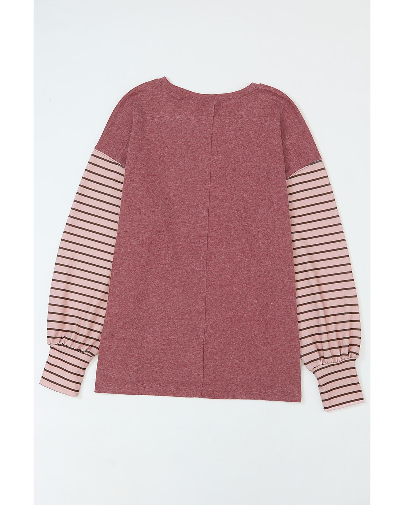 Red Colorblock Striped Bishop Sleeve Top – S