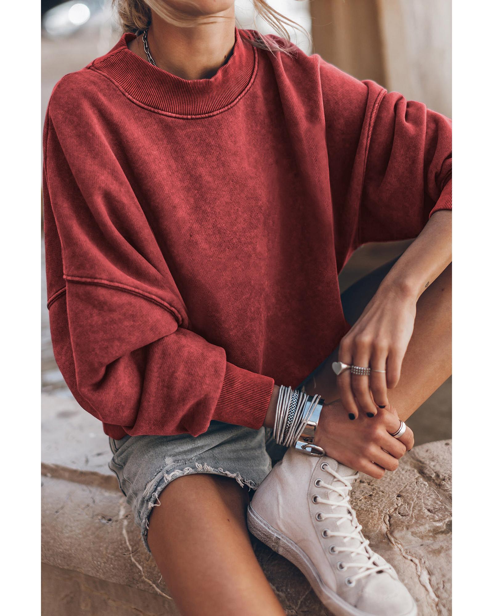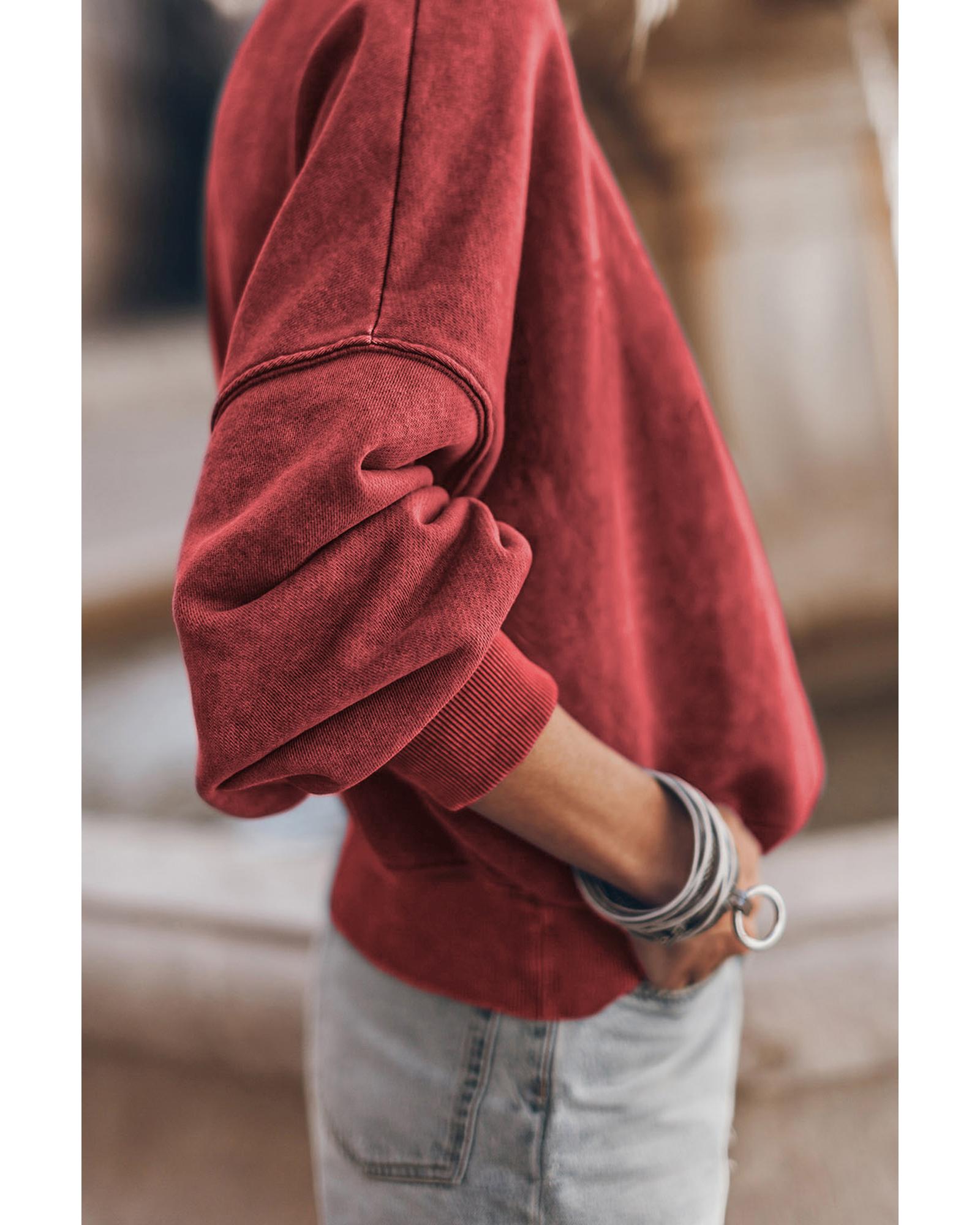 Red Dahlia Drop Shoulder Crew Neck Pullover Sweatshirt – XL