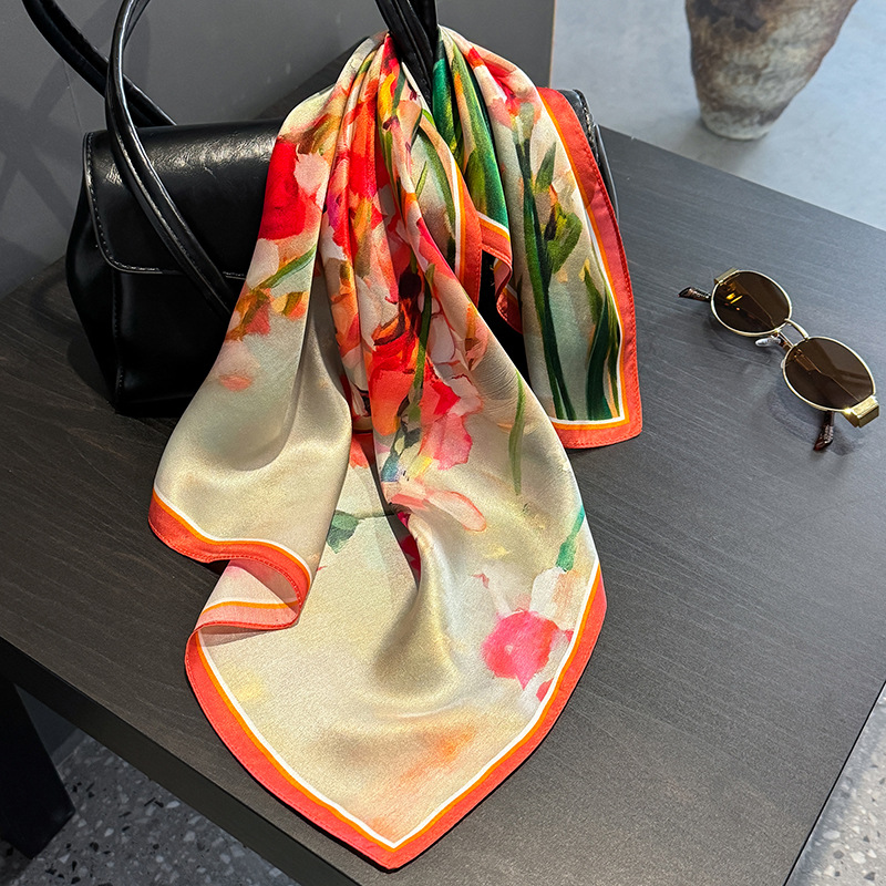 Red flowers Women’s silk scarves, accessories for all seasons
