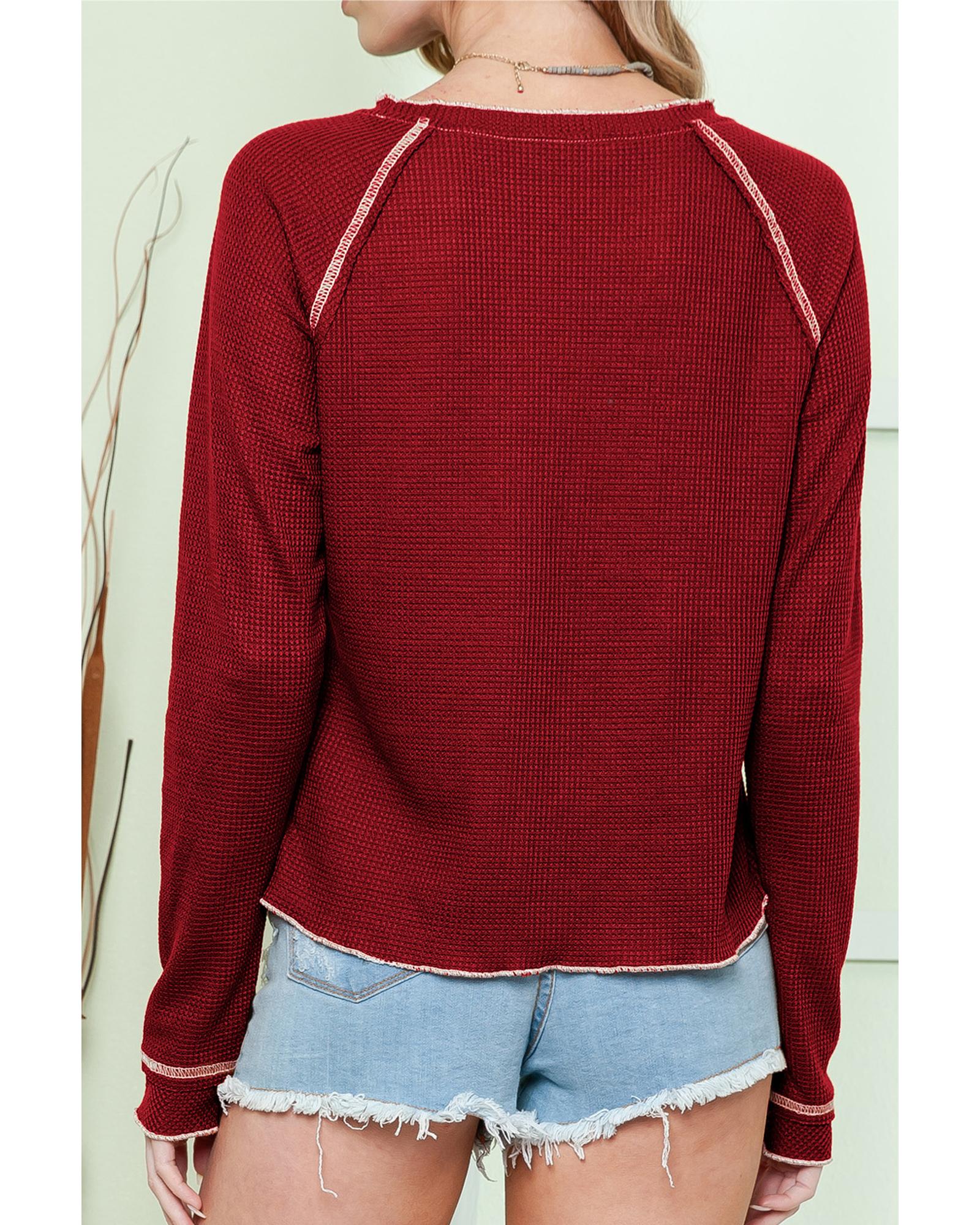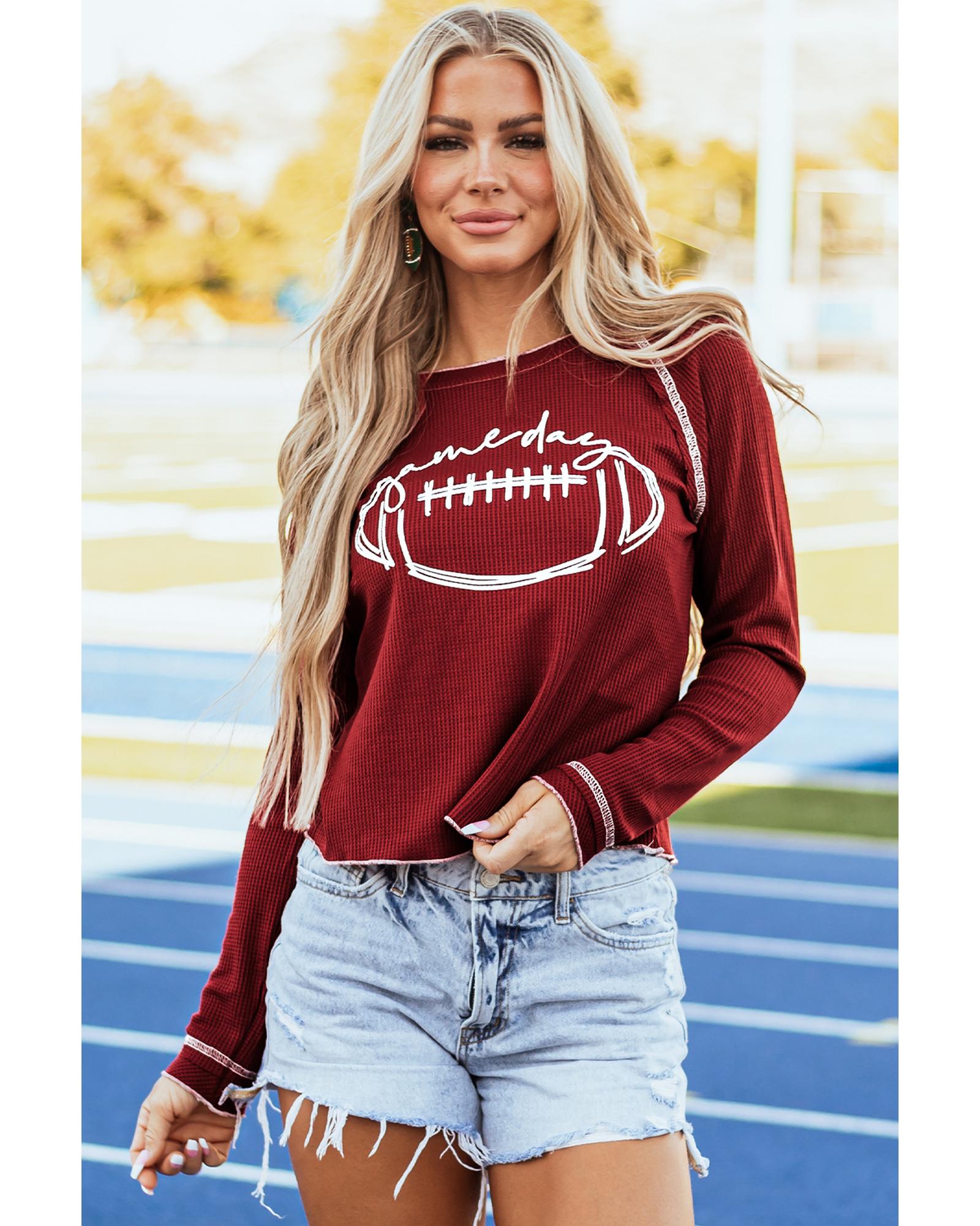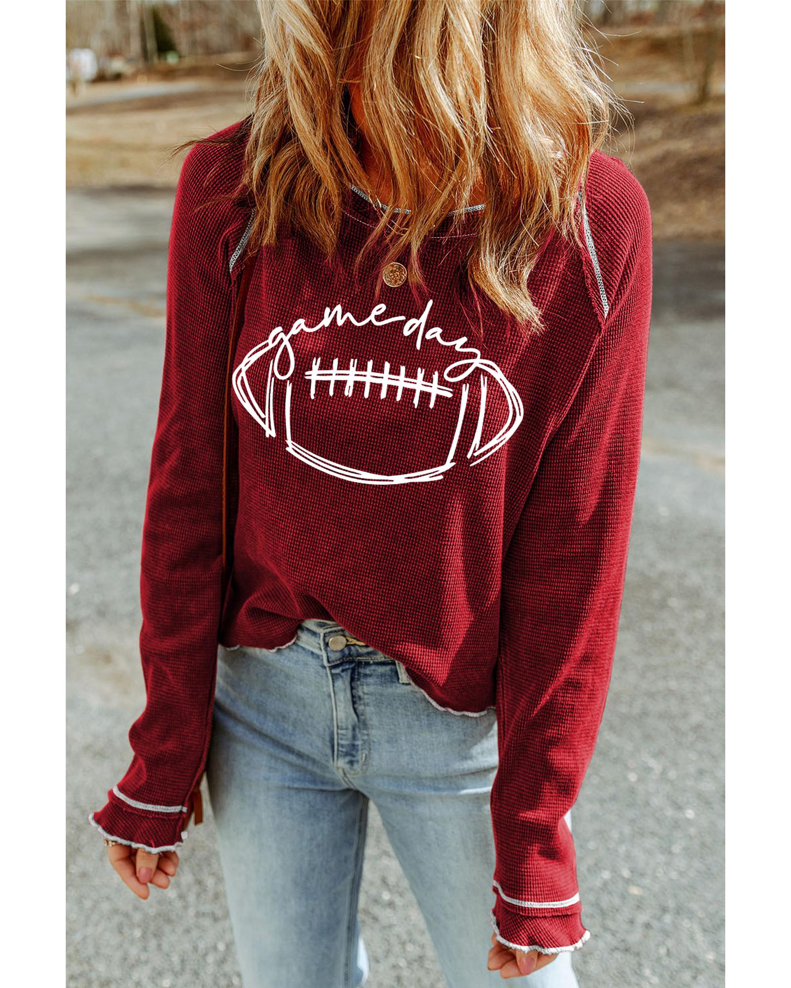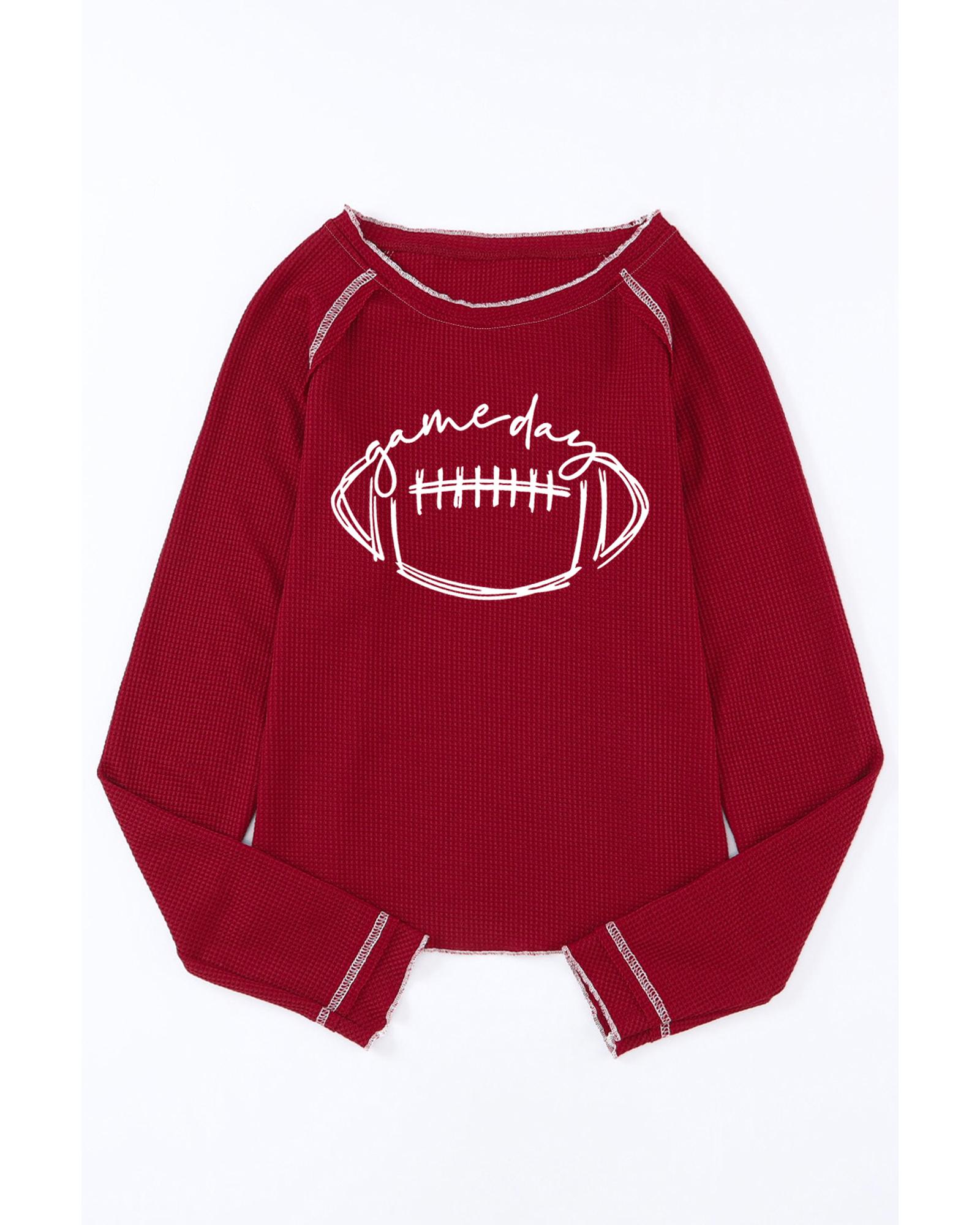 Red Game Day Rugby Football Graphic Thermal Knit Top – M