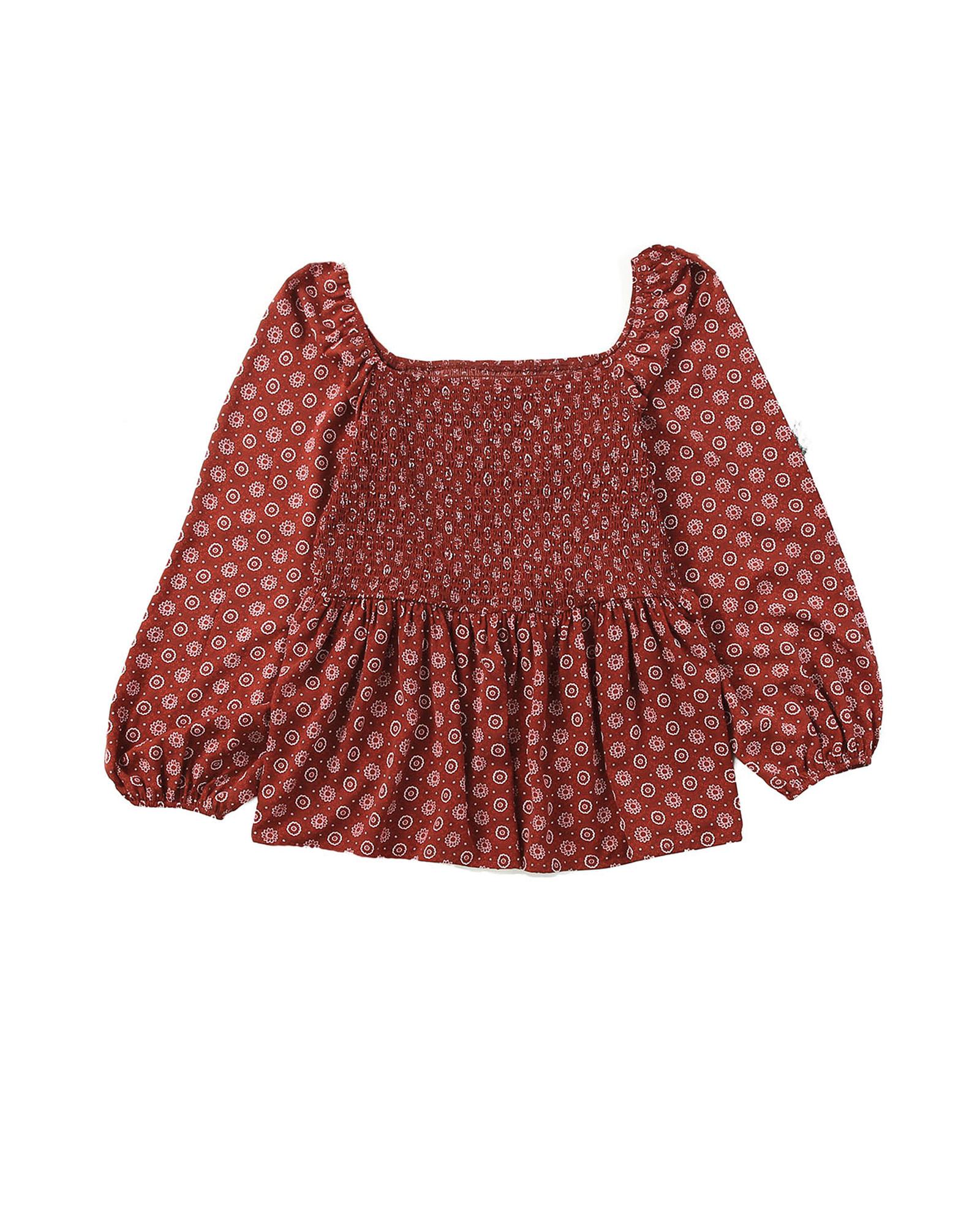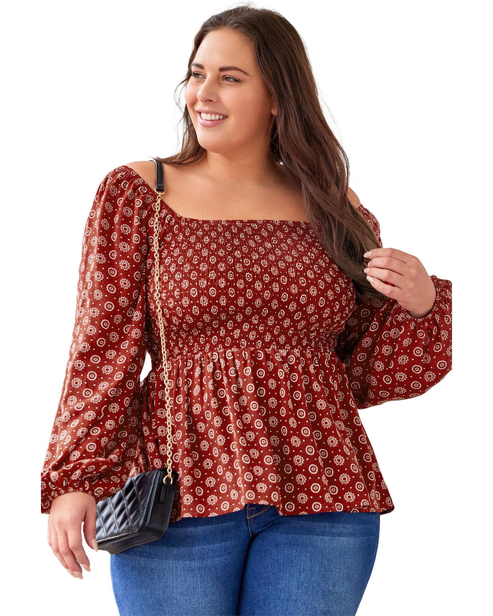Red Plus Size Square Neck Printed Peplum Top – 1X