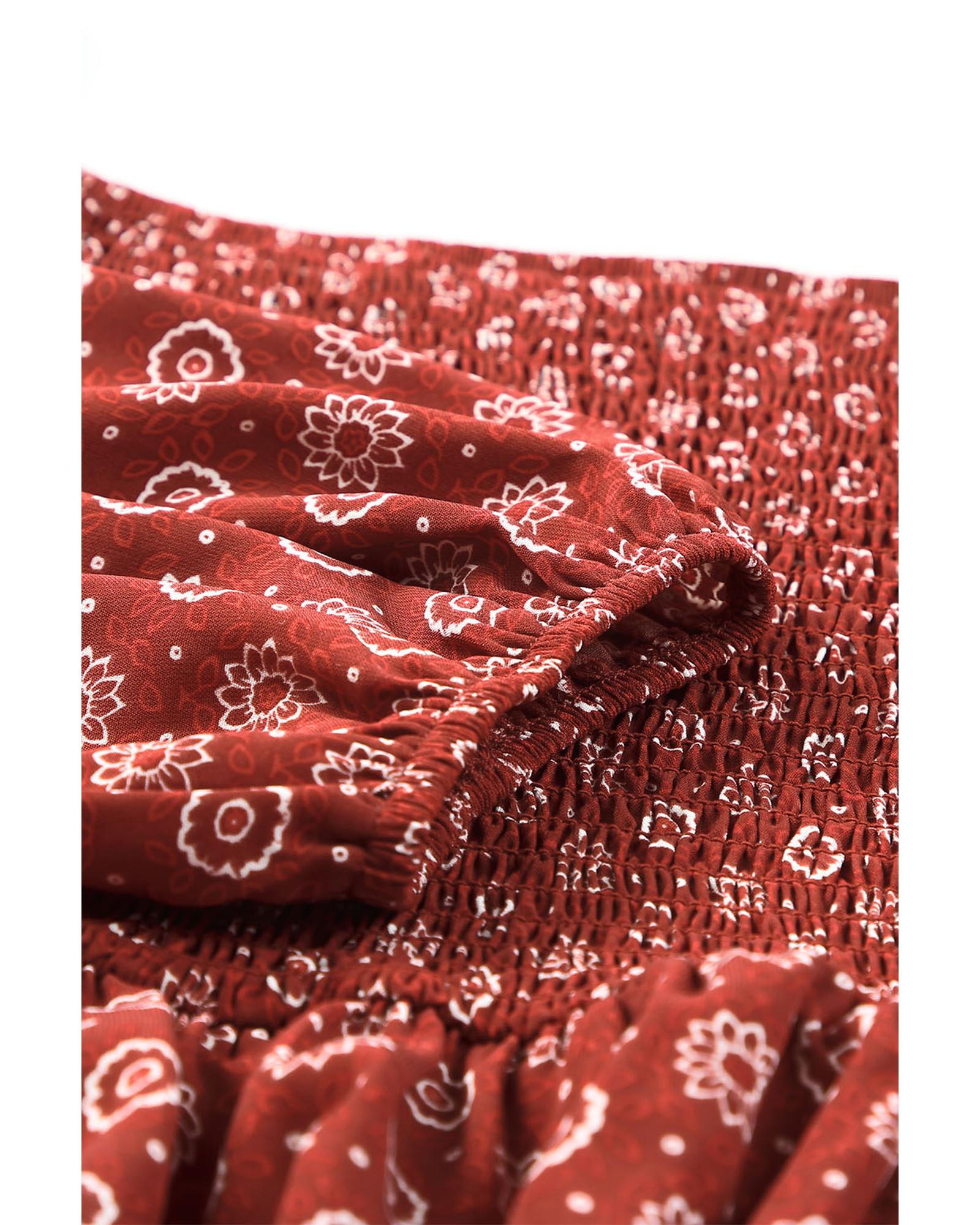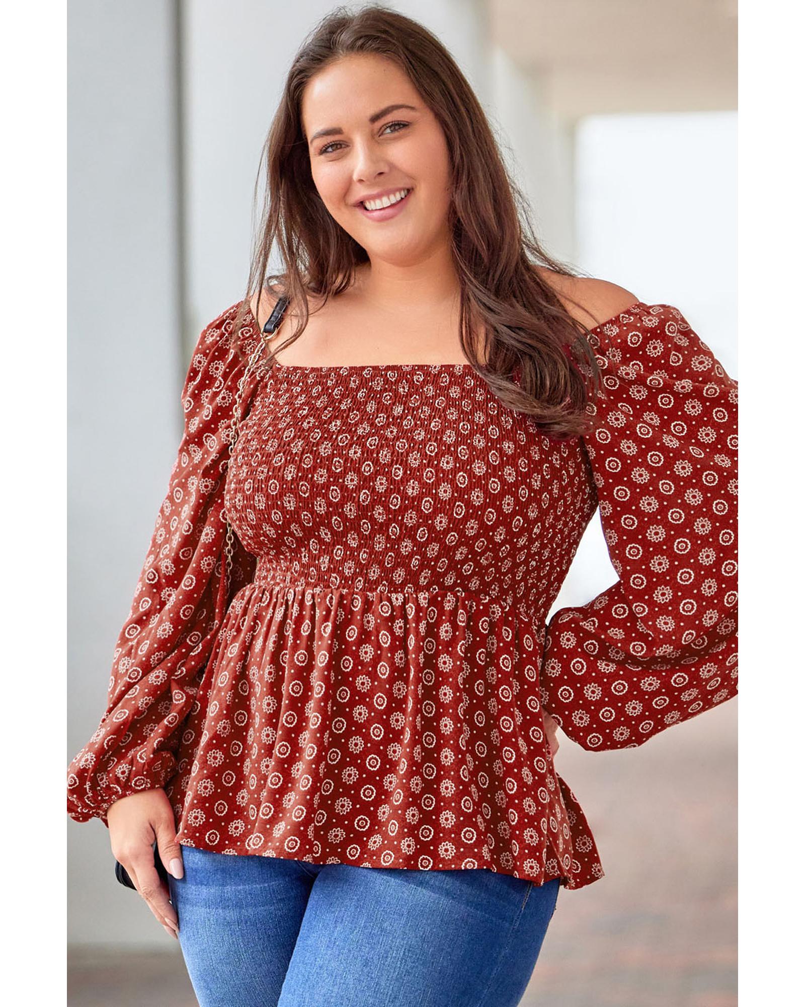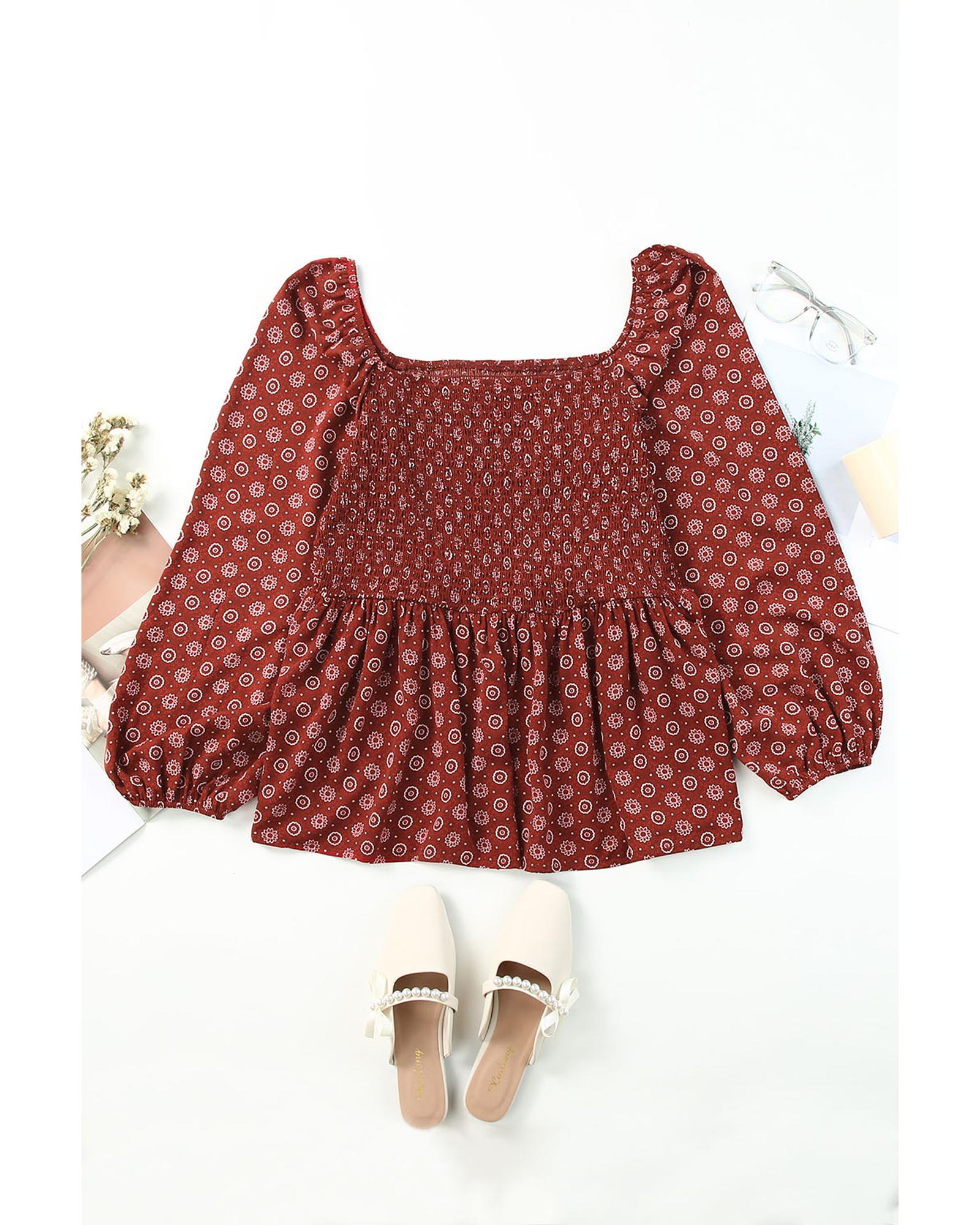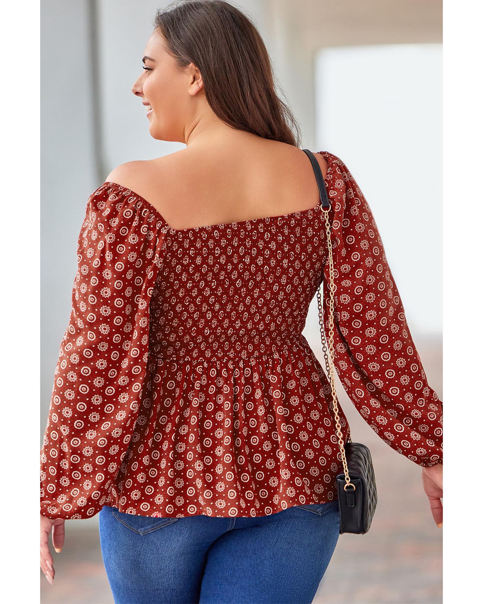 Red Plus Size Square Neck Printed Peplum Top - 2X