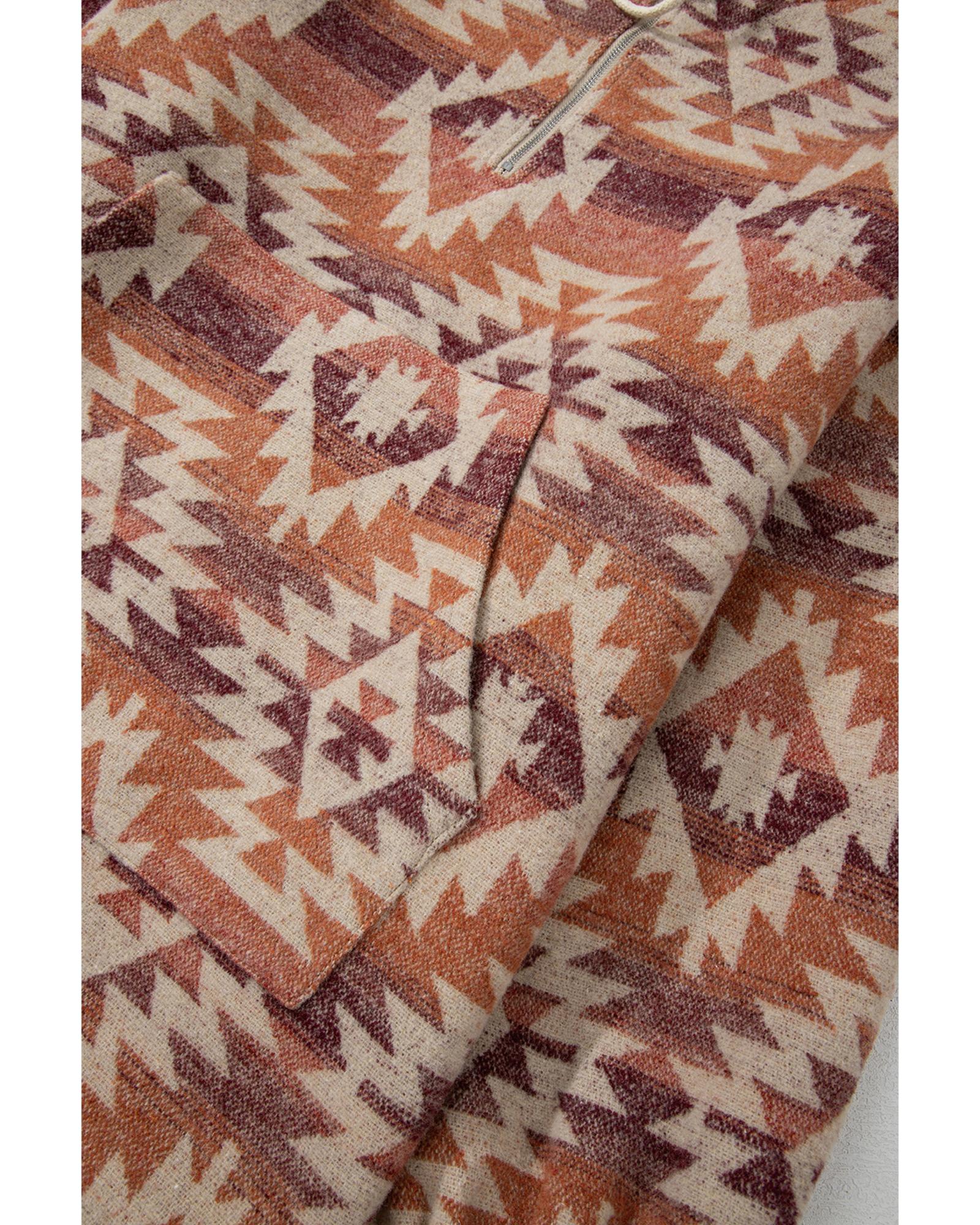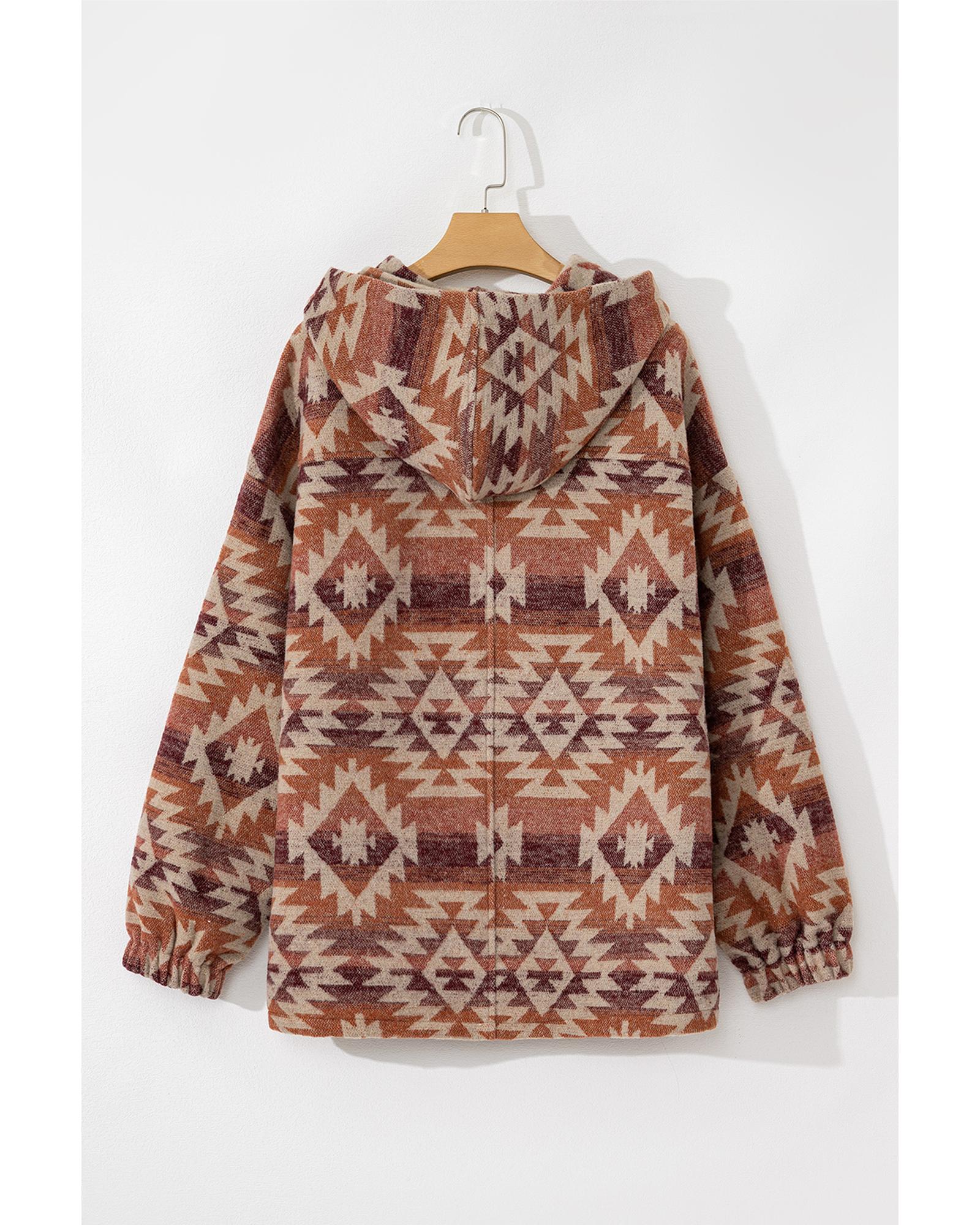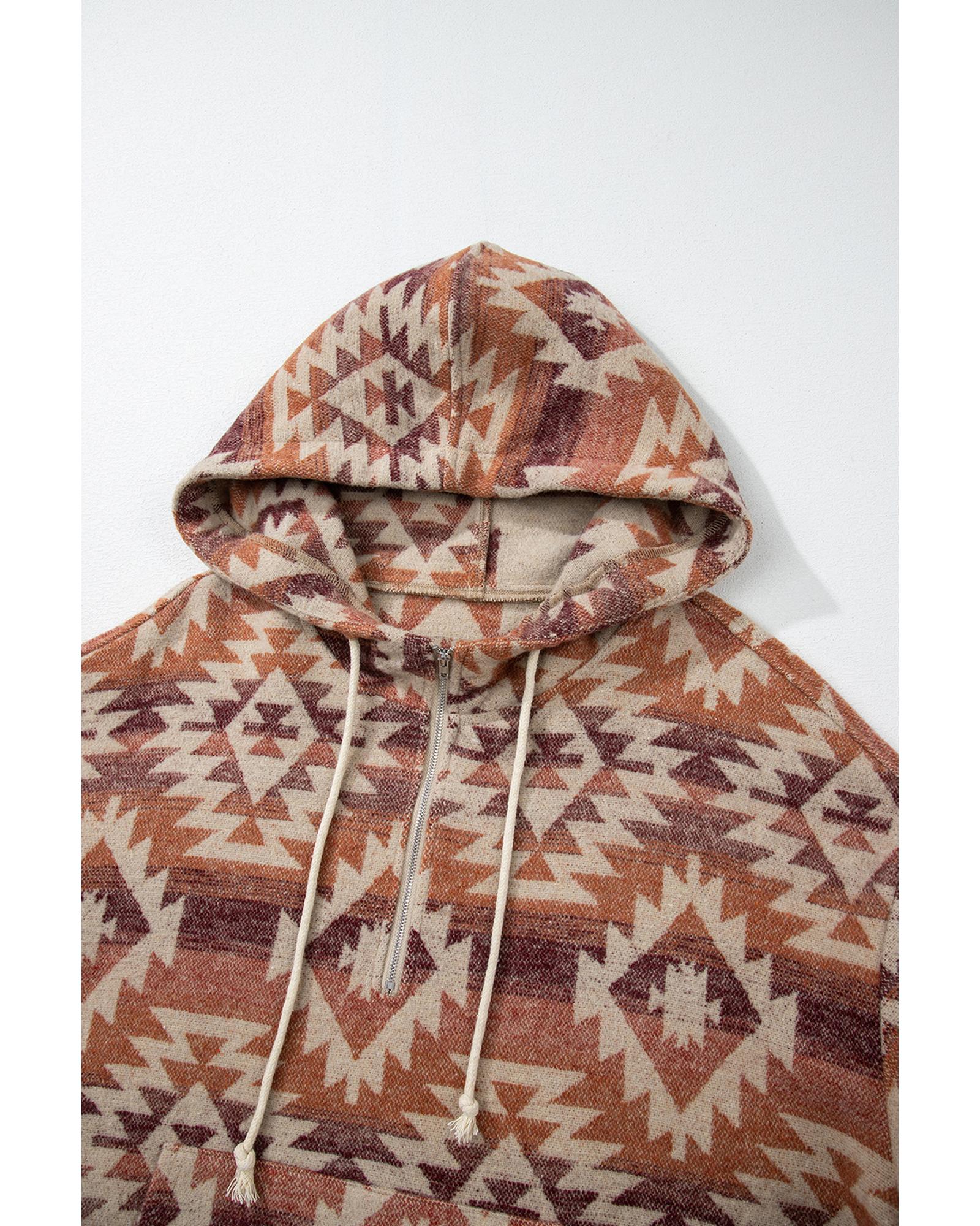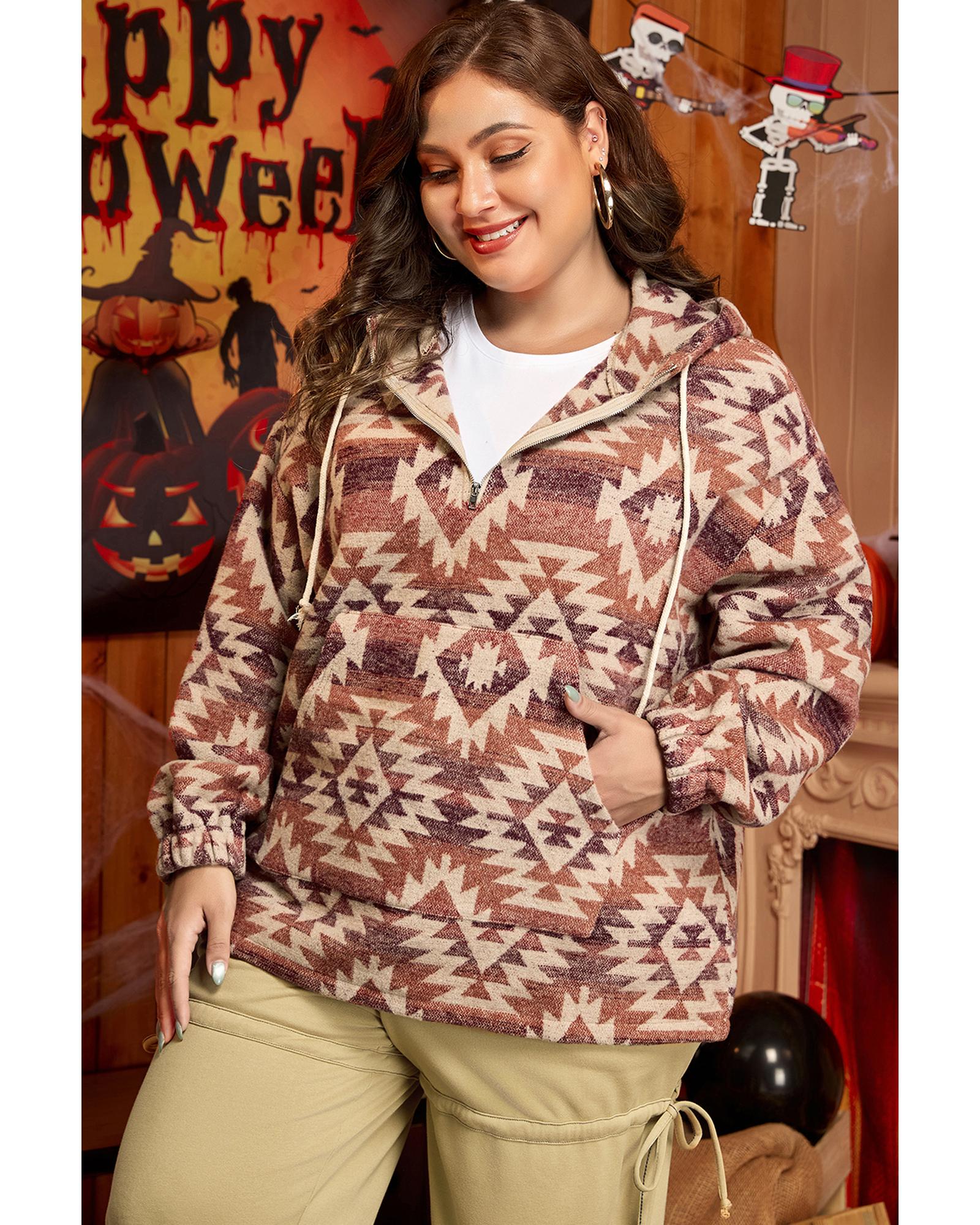 Red Plus Size Western Fashion Aztec Patterned Half Zip High Neck Hoodie – 3X