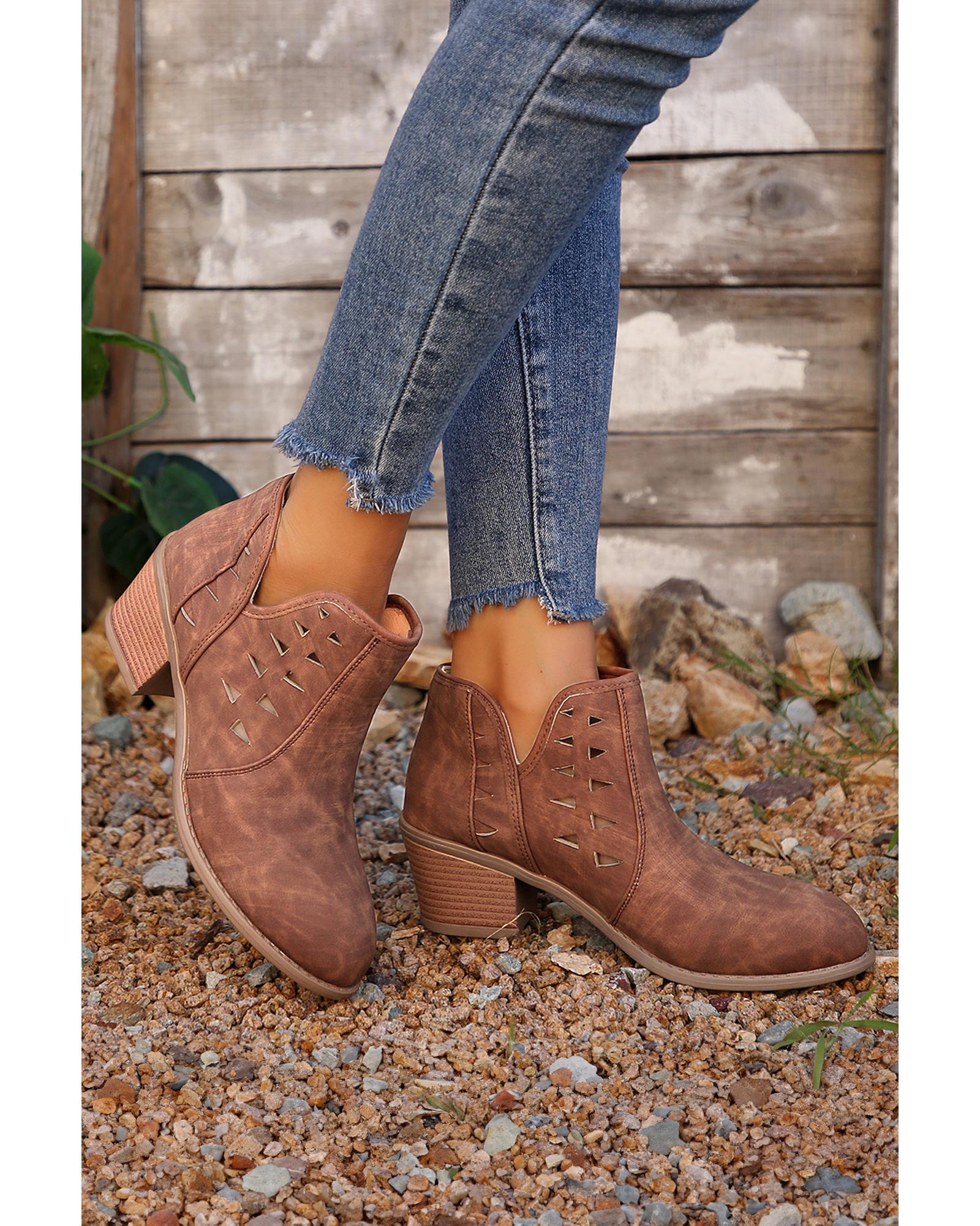 Red Sandalwood Cut Out Suede Pointed Toe Heeled Ankle Boots – 37 EU