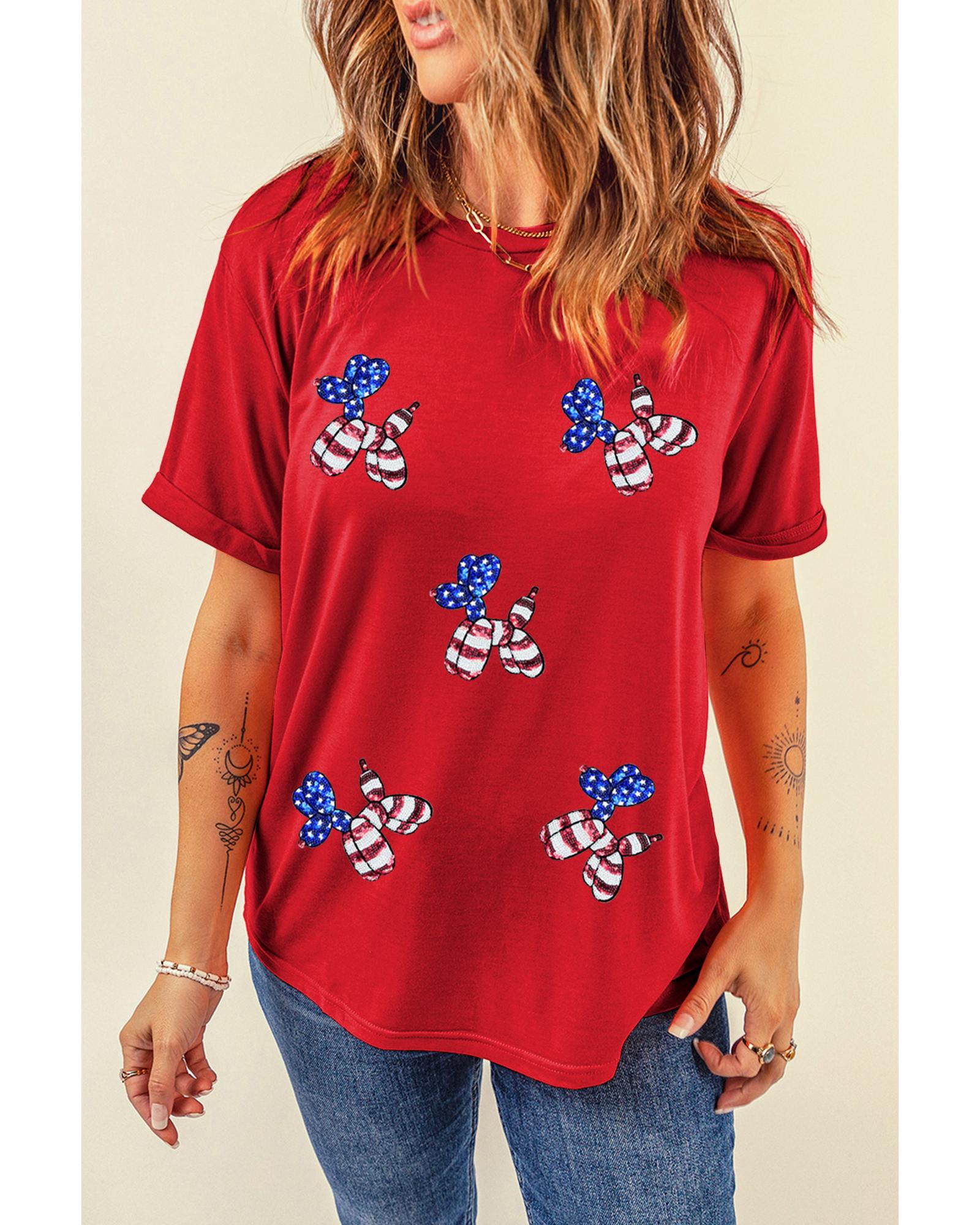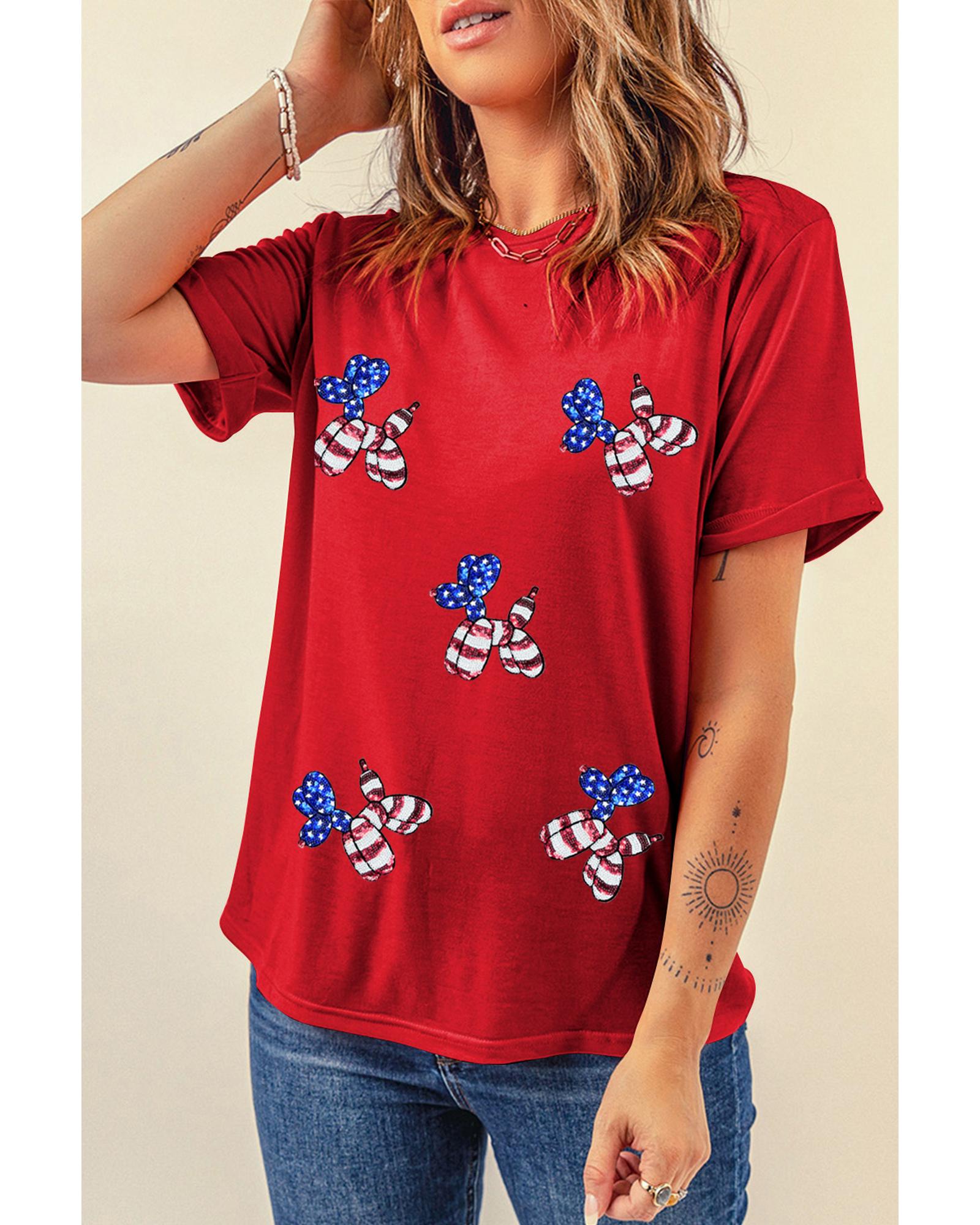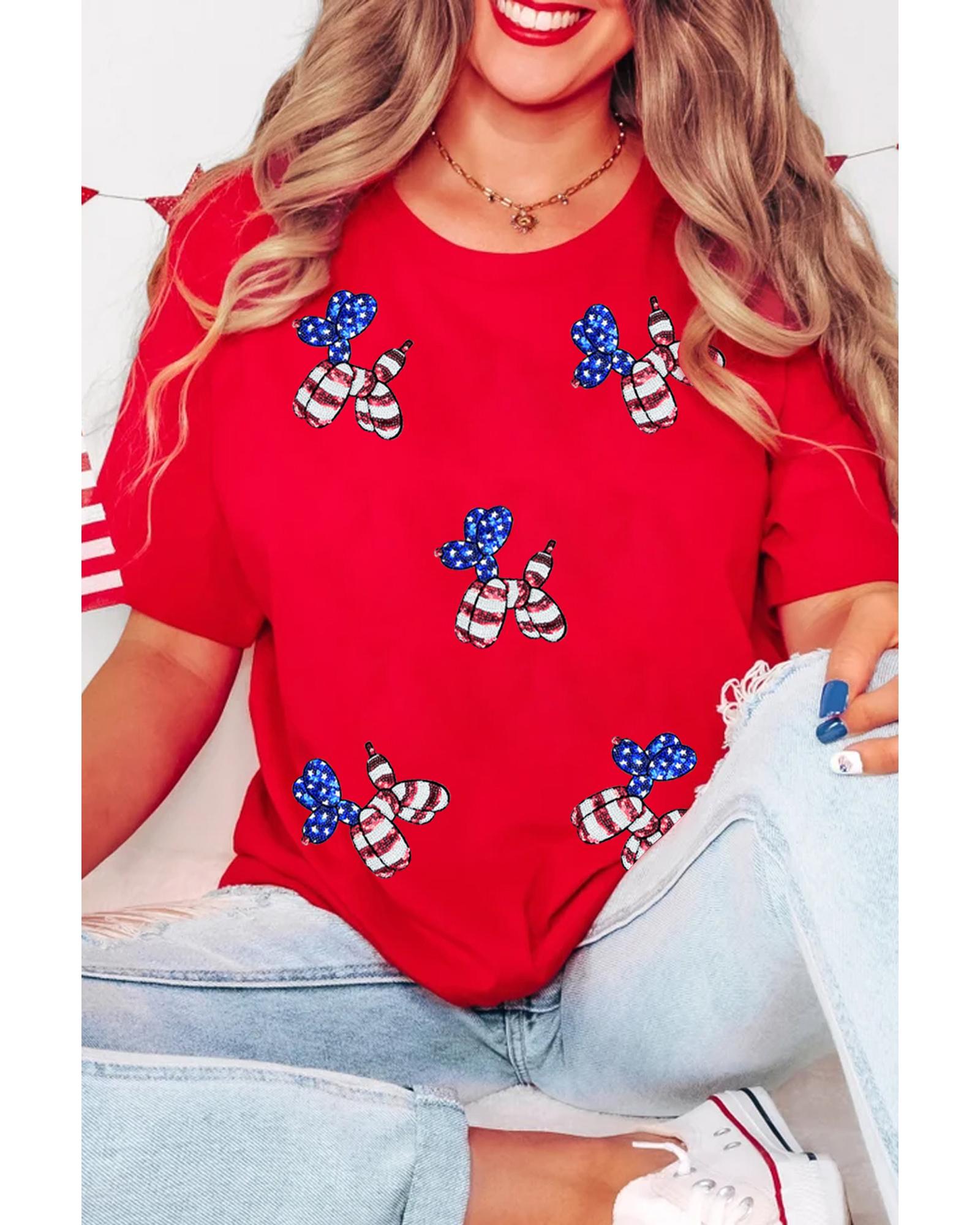 - Patriotic tee with sequin balloon puppy graphic