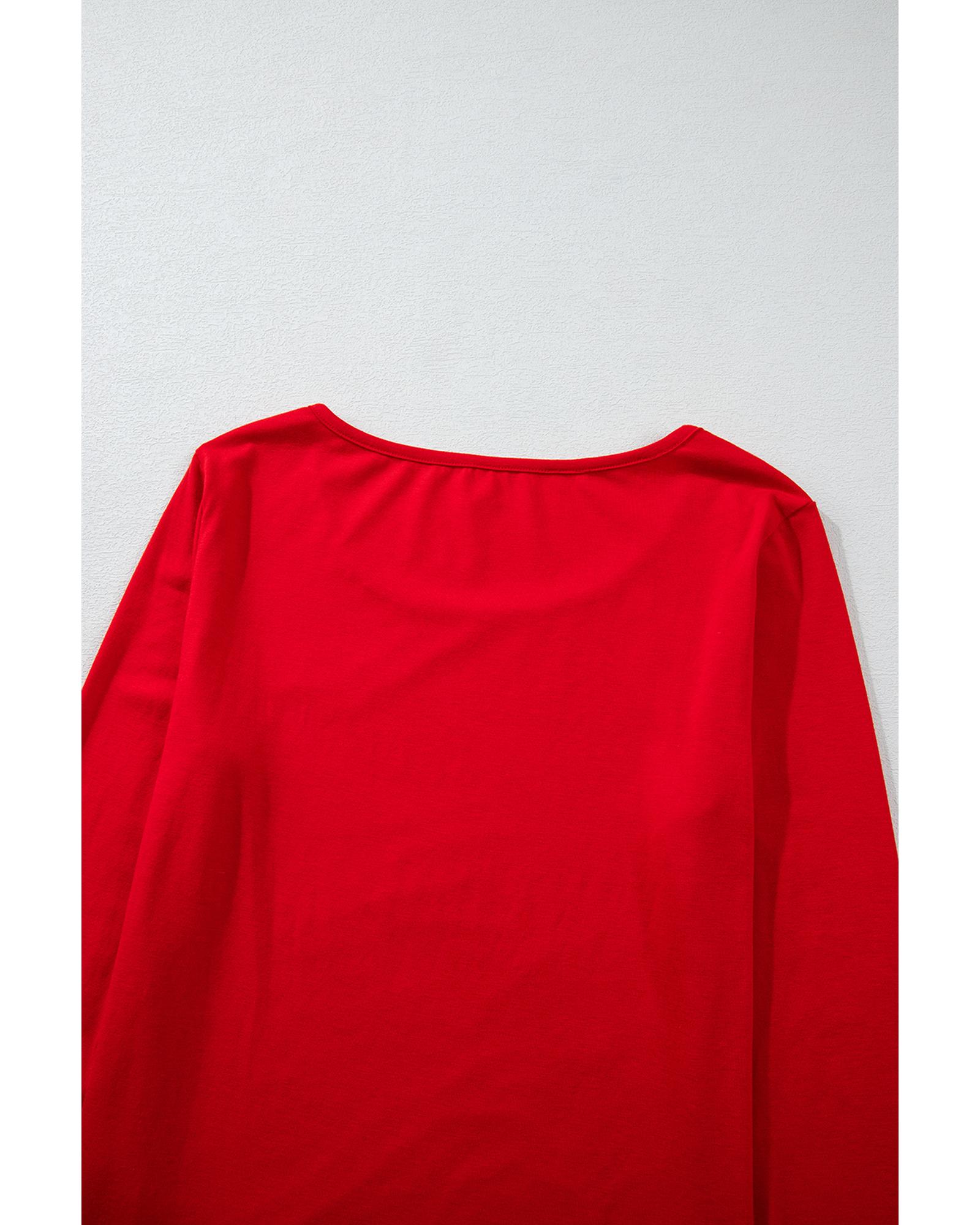 Red Solid Top and Christmas Pants Two Piece Lounge Set – L