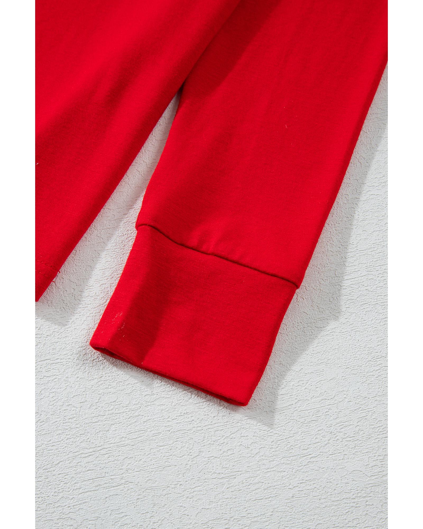 Red Solid Top and Christmas Pants Two Piece Lounge Set – XL
