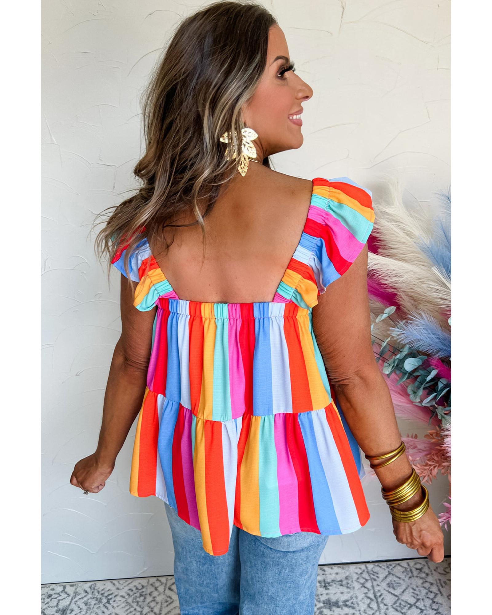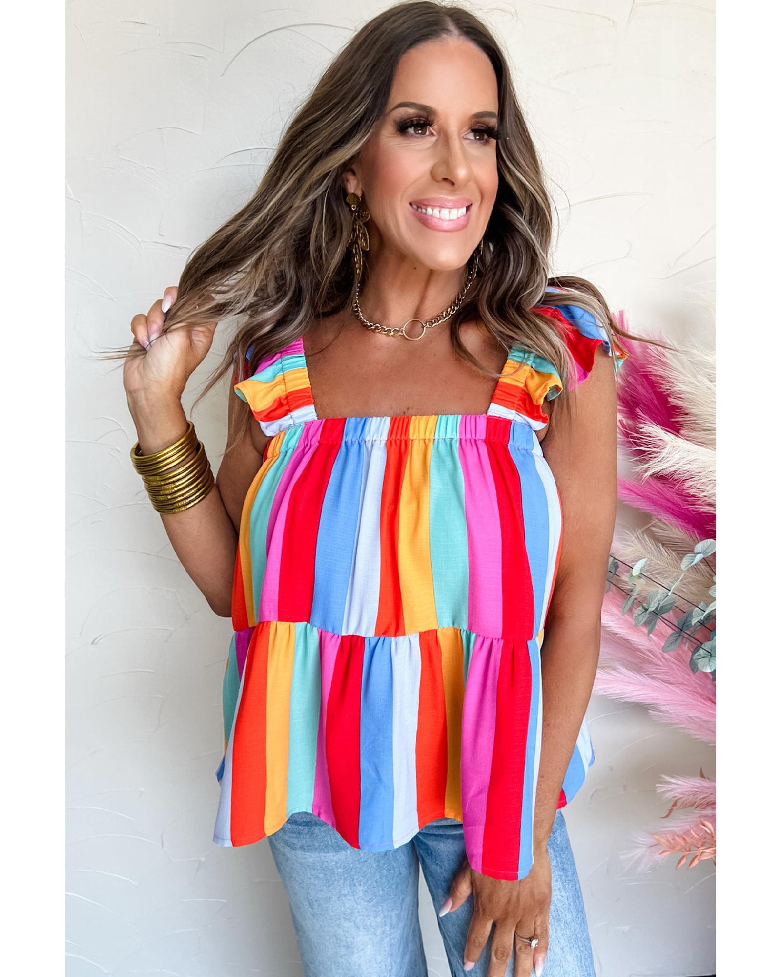 Red Stripe Ruffled Straps Babydoll Tank Top – XL