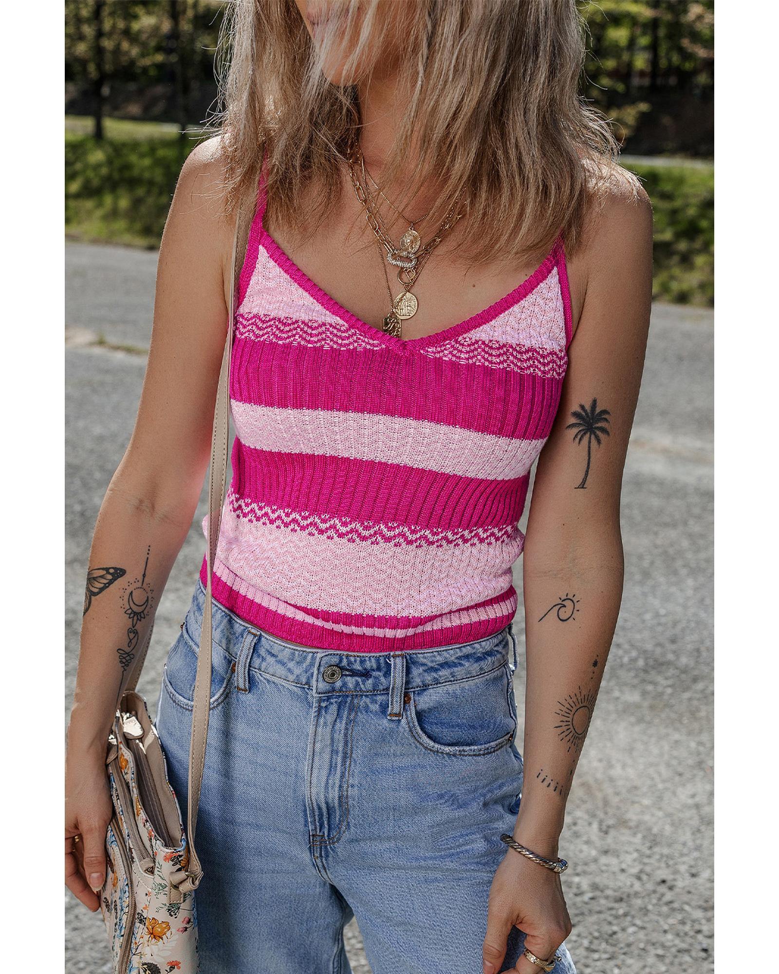 Red Stripe Spaghetti Strap V Neck Sweater Vest – L