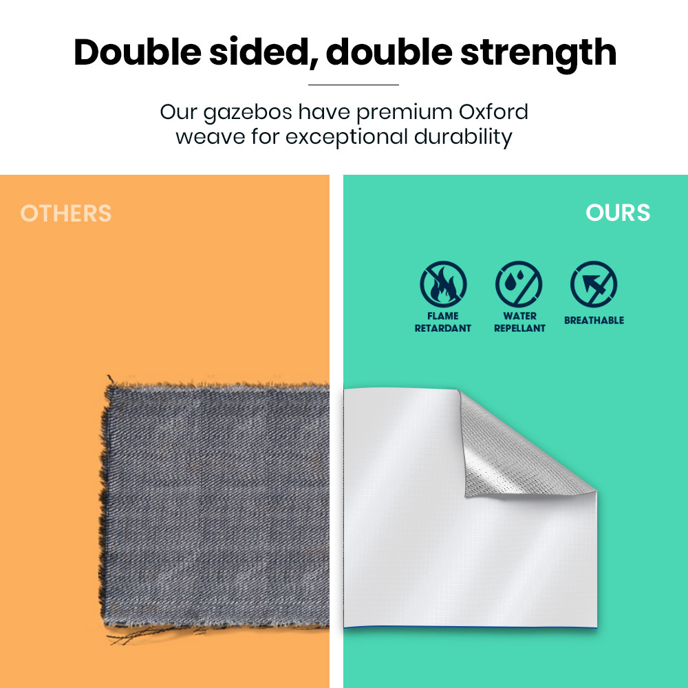 The Red Track 3x3m Gazebo stands out with the smallest folded size on the market—just 93cm long! This ultra-compact 12kg design makes it incredibly easy for one person to carry, transport, and store, offering unmatched convenience compared to bulkier alternatives. Whether you’re short on space or always on the move, this gazebo’s design ensures portability without compromise.