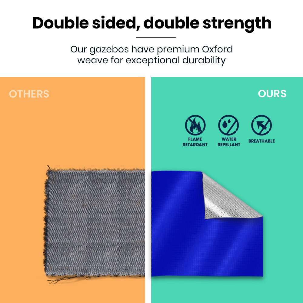 The Red Track 3x3m Gazebo (with 3 walls included) stands out with the smallest folded size on the market—just 93cm long! This ultra-compact 13kg design makes it incredibly easy for one person to carry, transport, and store, offering unmatched convenience compared to bulkier alternatives. Whether you’re short on space or always on the move, this gazebo’s design ensures portability without compromise.