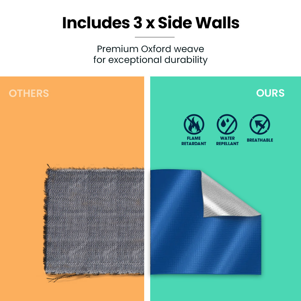 These walls are ideal during outdoor events, or family gatherings, and great for using the gazebo as a stall at markets or at sporting events.