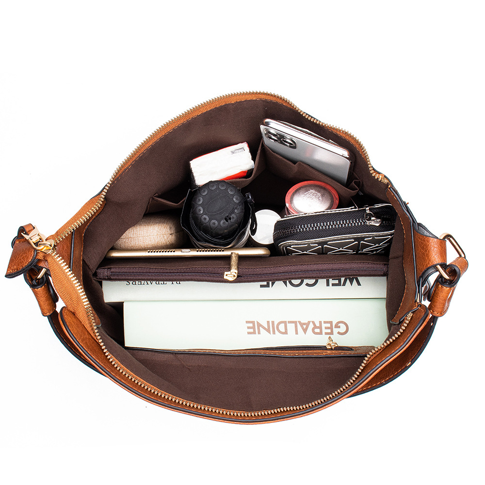• Spacious & Organized Interior: The large main compartment, secured by a smooth top zipper, features a central zippered divider pocket, perfect for keeping your items organized. It also includes one side zipper pocket for valuables and two open slip pockets for your phone and keys.