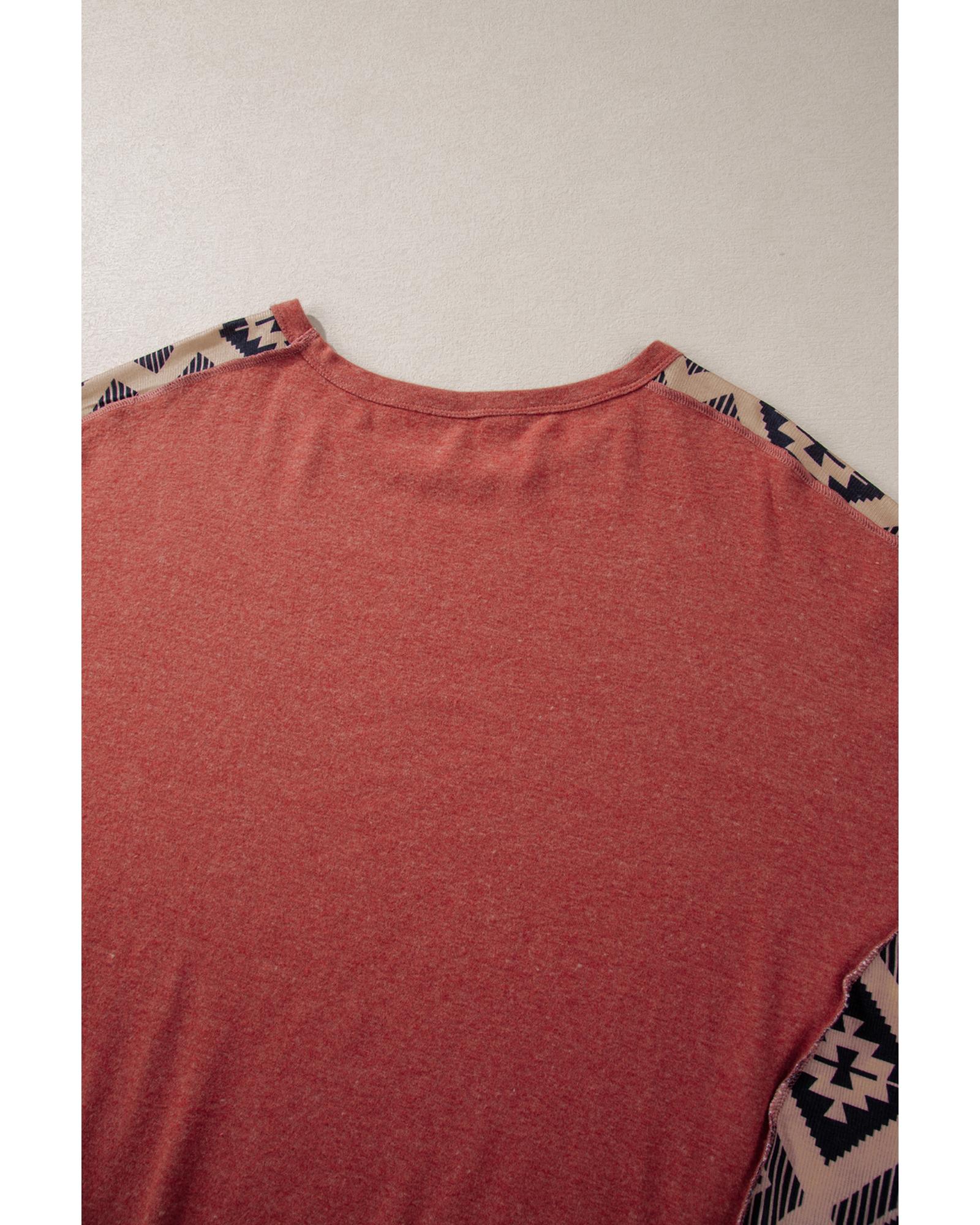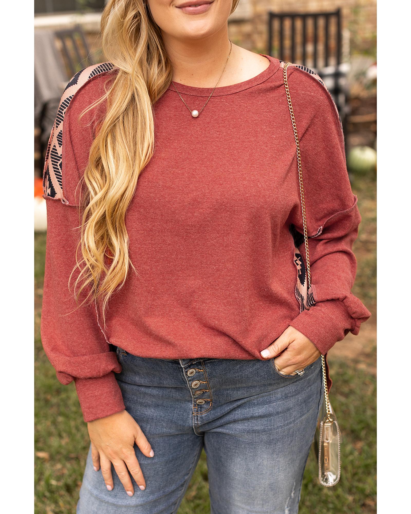 Redwood Burl Aztec Patchwork Drop Shoulder Plus Size High Low Sweatshirt – 1X