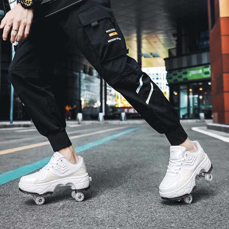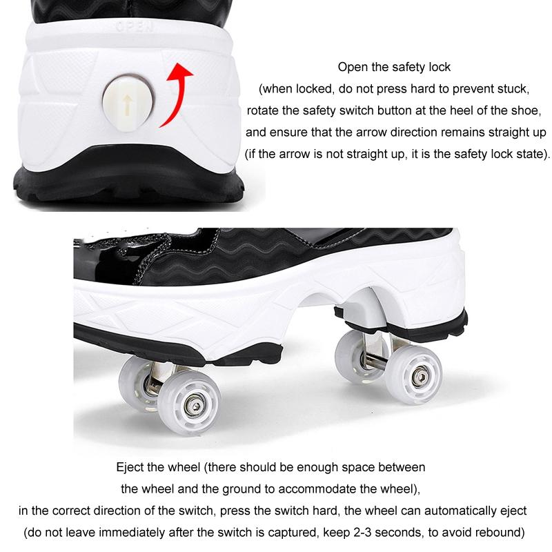Retractable Dual-purpose Roller Skates – Size 33 Deformable Four-wheel – Df09 White – 33