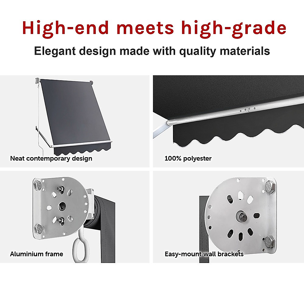 With its easy-to-use fixed pivot arm, all you need to do is to use the hand crank to retract or extend your awning. With its high-quality breathable shade in 100% polyester valance, you'll enjoy plenty of airflow to maximise ventilation. Its tough steel frame can hold up under almost any weather condition. A rubber bracket ring keeps the valance from fretting.